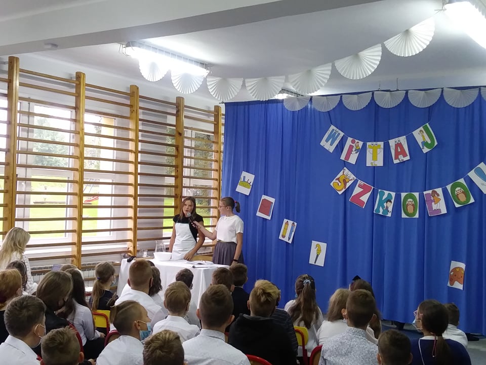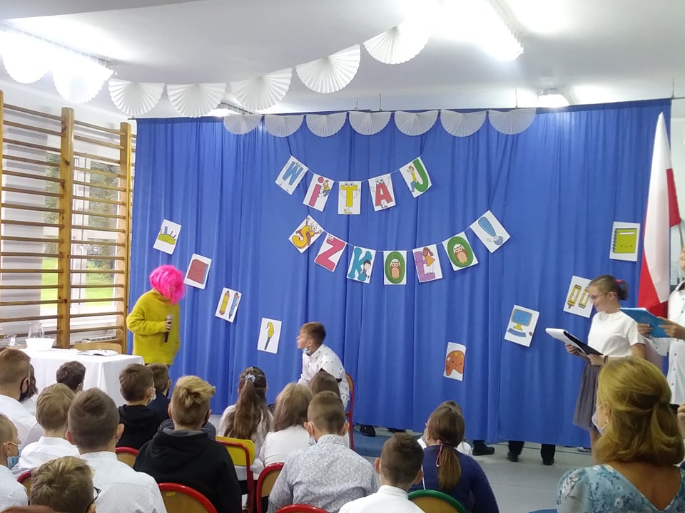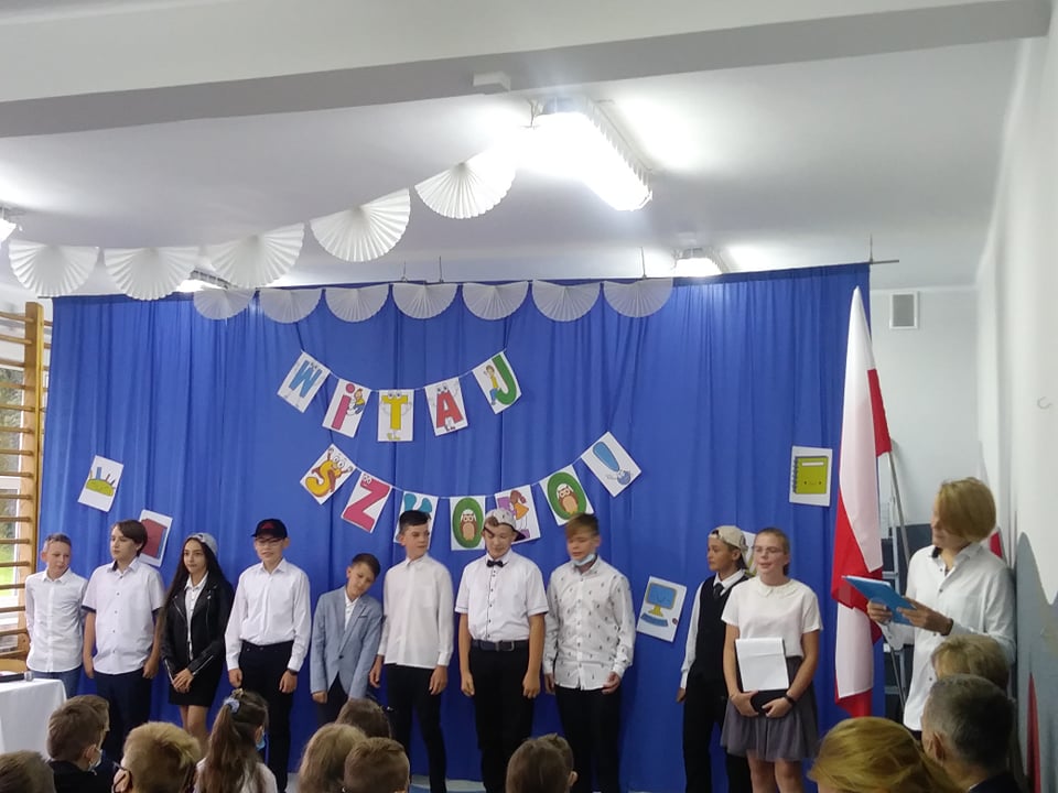 Oprawę artystyczną przygotowali w tym roku uczniowie klasy VII, którzy w pierwszej części przedstawienia upamiętnili wydarzenia września 1939 roku oraz 82. rocznicy bitwy pod Woźnikami, oddając hołd Bohaterom tamtych zdarzeń. Siódmoklasiści pragnęli szczególnie podkreślić radość z możliwości beztroskiego pójścia do szkoły w wolnej Polsce.
