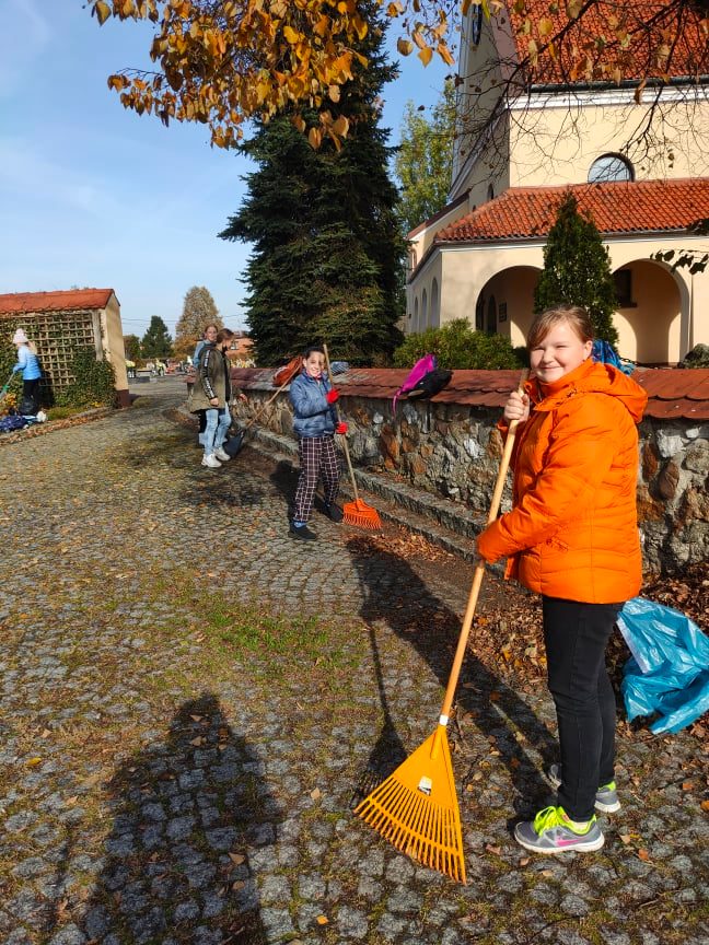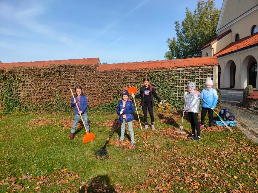 Z inicjatywy Szkolnego Klubu Wolontariatu ochotnicy z klas IV-VIII wraz z wychowawcami udali się do Parafii św. Jakuba Apostoła Starszego w Lubszy, by pomóc przy jesiennych porządkach. Polska złota jesień wiąże się bowiem nie tylko z urokliwymi krajobrazami, ale i sporą ilością zalegających liści, których wbrew pozorom nie tak łatwo się pozbyć.