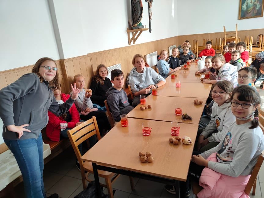 Po wykonanej pracy na uczniów czekała niespodzianka w postaci gorącej herbaty, pysznych pączków i orzechów, za co serdecznie dziękujemy Ks. Rudolfowi Badurze.