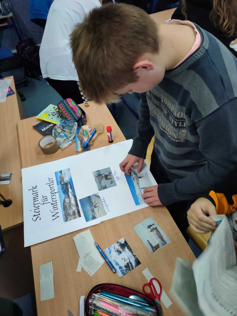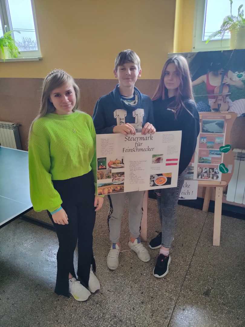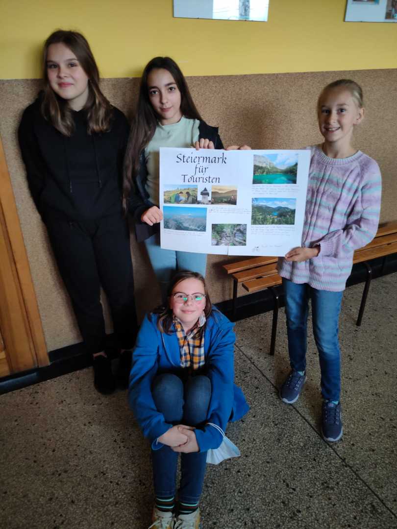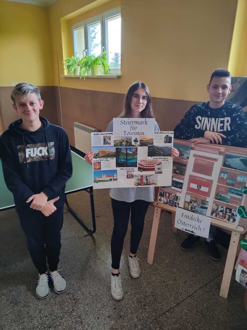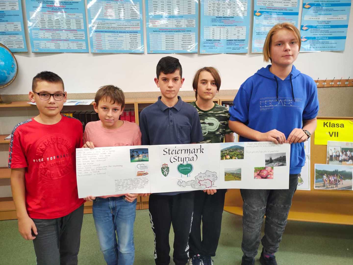W listopadzie uczniowie klasy VII i VIII oczami wyobraźni wybrali się w podróż do Styrii, nazywanej zielonym sercem Austrii. Po zapoznaniu z różnorodnymi materiałami autentycznymi, jak foldery, gazety i czasopisma, strony internetowe oraz filmy edukacyjne uczniowie zostali podzieleni na grupy, w których następnie realizowali zadania projektowe. Polegały one na atrakcyjnym przedstawieniu rozległego regionu Styrii i tym samym zachęceniu do jego odwiedzenia z uwzględnieniem różnorodnych upodobań i potrzeb: zwolenników sportów zimowych, turystów ceniących bliskość natury, ciszę i spokój, osób preferujących aktywny wypoczynek bądź miłośników zabytków architektury.