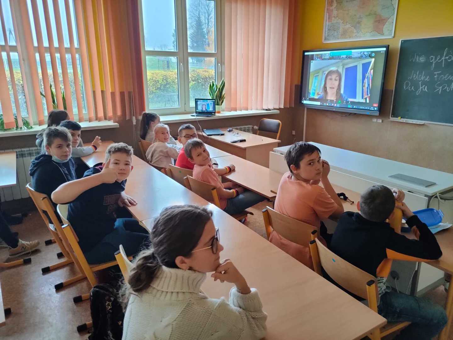 18 i 19 listopada uczniowie klas IV-VIII mieli wspaniałą okazję, by uczestniczyć w niemieckojęzycznych zajęciach z native speakerem Lukasem Ritzem, praktykantem Polskiego Stowarzyszenia Nauczycieli Języka Niemieckiego Oddział Katowice. Prowadzący niezwykle ciekawie opowiedział o swoim życiu prywatnym i zawodowym, podróżach po świecie, praktykach w szkołach, a następnie odpowiedział na liczne pytania nurtujące młodych słuchaczy.