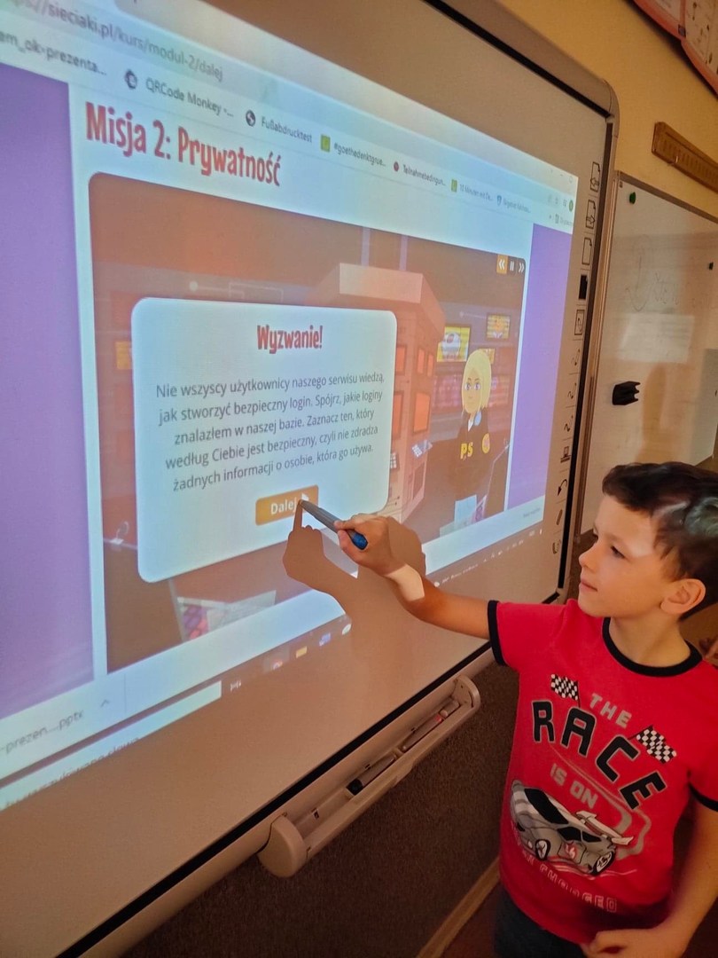 Podczas poświęconych tej tematyce zajęć świetlicowych dzieci odkrywały tajniki Internetu, ale przede wszystkim wzbogacali swą wiedzę o istotne wskazówki bezpiecznego użytkowania zasobów sieci. Na podstawie praktycznych ćwiczeń uczniowie dowiedzieli się, jak chronić swoją prywatność w wirtualnej rzeczywistości. Uczestniczyli w edukacyjnych zabawach i grach w ramach projektu edukacyjnego Sieciaki.pl, prowadzonego przez przez Fundację „Dajemy Dzieciom Siłę” będącym elementem programu „Safer Internet".