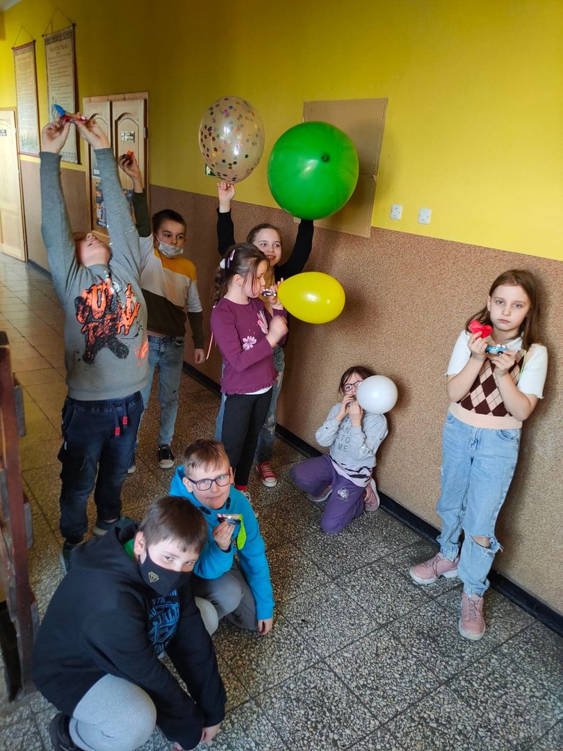 Tym razem w ramach świetlicowego cyklu „Eksperymenty bawią i uczą” nasi uczniowie wykorzystując proste przyrządy i zasady fizyki skonstruowali balonowe wyścigówki. W przyjemny sposób dowiedzieli się, że siłą napędu pojazdów stało się wyższe ciśnienie powietrza w balonie od tego na zewnątrz i jego chęć wydostania się, co zostało jeszcze spotęgowane przez nacisk kurczącego się balonika podczas ulatniania powietrza. Zarówno wspólne majsterkowanie, jak i widowiskowe wyścigi sprawiły młodym konstruktorom mnóstwo frajdy, a także wzbogaciło ich wiedzę i umiejętności.