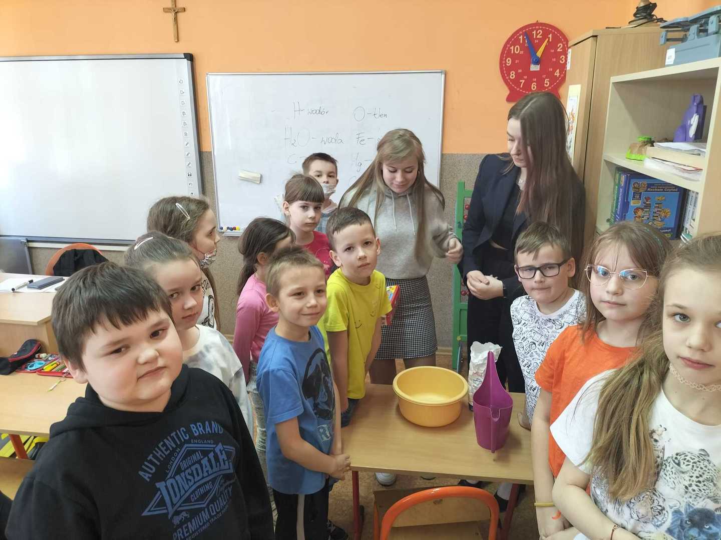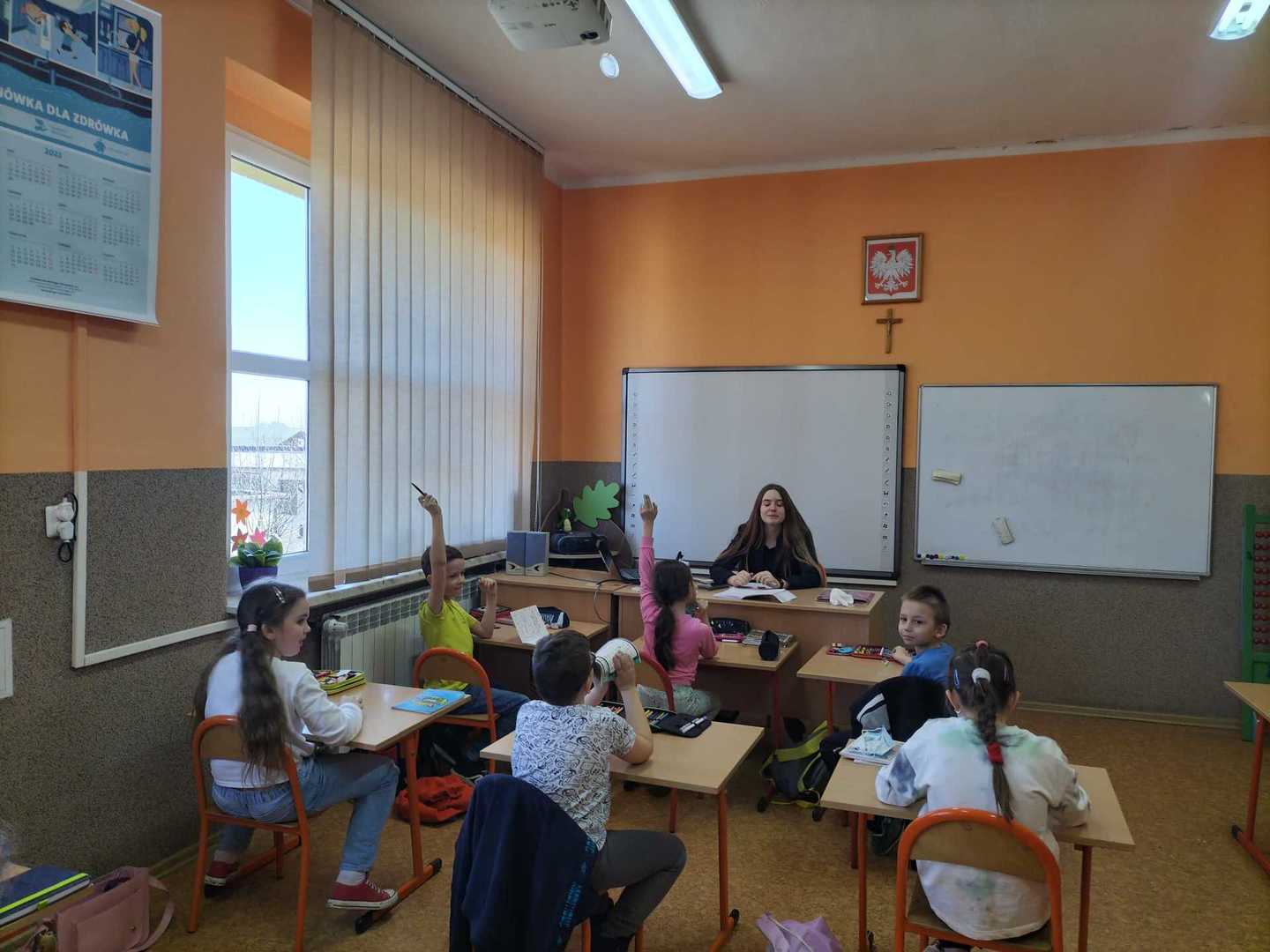22 marca obchodziliśmy Dzień Samorządności Uczniowskiej. Jest to tradycja naszej szkoły. Tego dnia uczniowie klasy najstarszej wcielają się w role nauczycieli pod okiem naszych szkolnych pedagogów. Ósmoklasiści spróbowali swych sił w nauczaniu swych młodszych kolegów. Trzeba przyznać, że całkiem dobrze sobie poradzili. W rolę pani od biologii wcieliła się Kamila Kołodziejska, a potem Kamila wraz z Amelią Lorenczyk zgłębiały tajemnice chemii. Przeprowadzono szereg eksperymentów, np. uczniowie klasy czwartej samodzielnie sporządzili „slime”. Uczeń Oskar Pielot był naszym nauczycielem wychowania fizycznego. Juliusz Wiatrek spróbował swych sił jako nauczyciel fizyki i historii, a Błażej Pieda i Miłosz Płaczek byli informatykami. Kinga Rzepka wraz z Wiktorią Łapok nauczały geografii, a Oliwia Kandzia wcieliła się w rolę anglistki. Germańskiego języka uczyła Wiktoria Łapok.