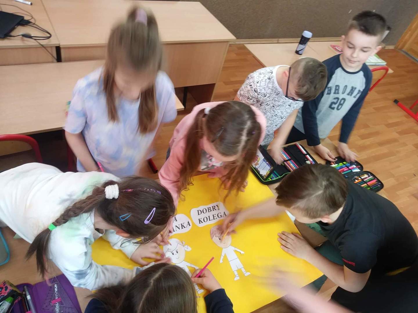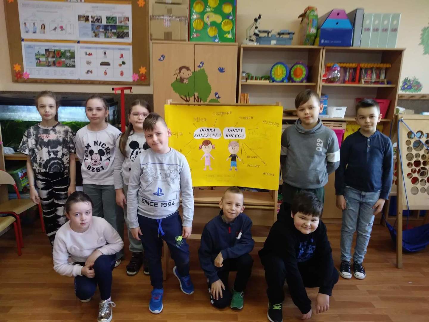 Przyjaźń jest niezwykle ważna w życiu każdego człowieka. Podczas zajęć świetlicowych przeprowadzono pogadankę mającą na celu promowanie i uwrażliwienie na takie wartości, jak przyjaźń i koleżeństwo. Dzieci z zaangażowaniem wysłuchały bajeczki terapeutycznej Joanny Chmielewskiej pt. „Czarodziejka”. Następnie wspólnie przygotowano plakat określający, jakie cechy powinien posiadać dobry kolega oraz dobra koleżanka. Uczestnicy zajęć świetlicowych wzięli również udział w zabawie „Obdarowywanie zaletami” mającej na celu przedstawienie jak największej liczby zalet wylosowanego kolegi, koleżanki.