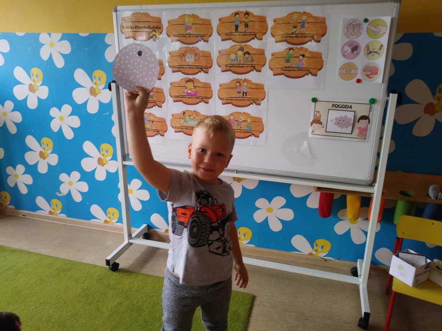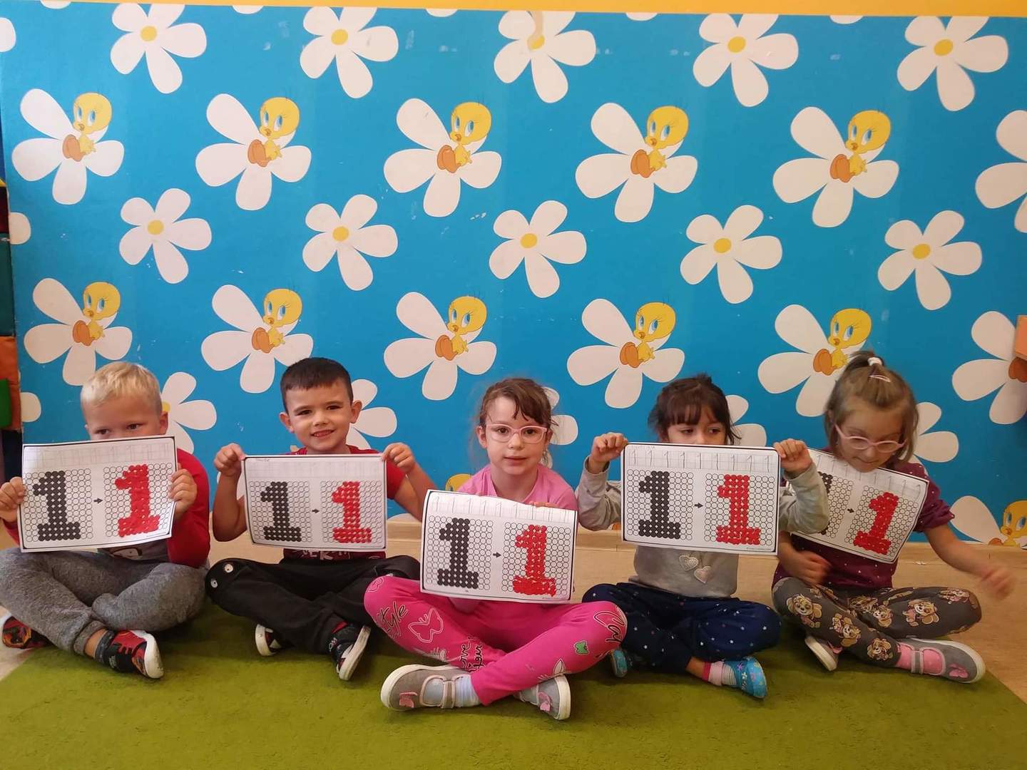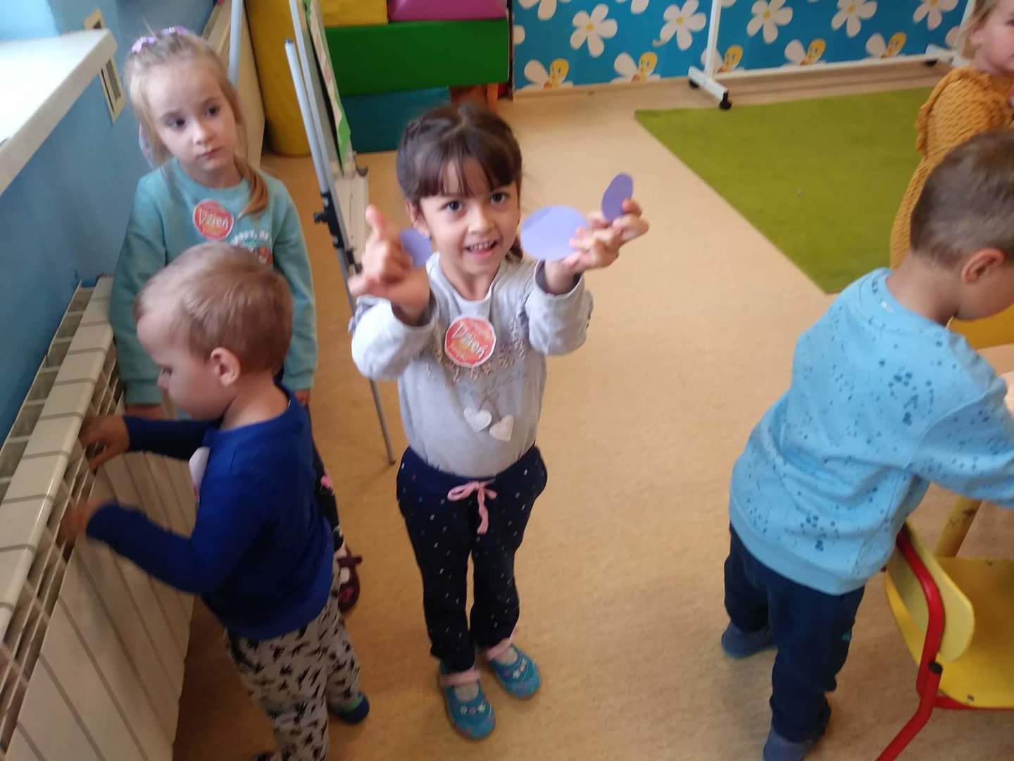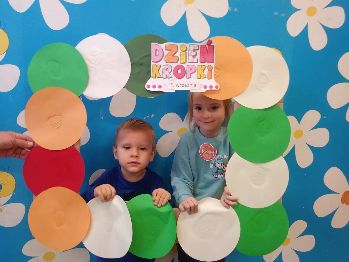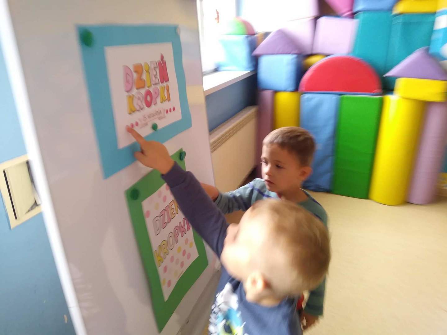 Międzynarodowy Dzień Kropki przypada 15 września. W tym dniu na dzieci uczęszczające do oddziału przedszkolnego, od samego rana, czekało wiele interesujących zadań, zabaw oraz ciekawych filmów edukacyjnych. Nie zabrakło również gimnastyki. Wszystkie dzieci mogły poczuć się jak prawdziwi detektywi – poszukując zaginionych kropek; jak artyści – tworząc różne figury oraz ciekawe prace plastyczne, jak modele – pozując do wspólnych oraz indywidualnych zdjęć. Wszystkie dzieci układały samodzielnie puzzle, starsze dzieci lepiły z plasteliny cyfrę 1. Każdy otrzymał specjalny znaczek. Na koniec zajęć każdy przedszkolak dostał pamiątkowy dyplom.