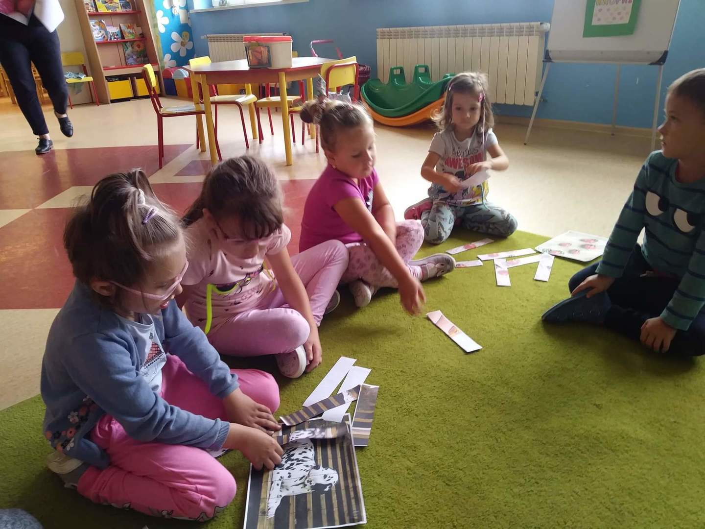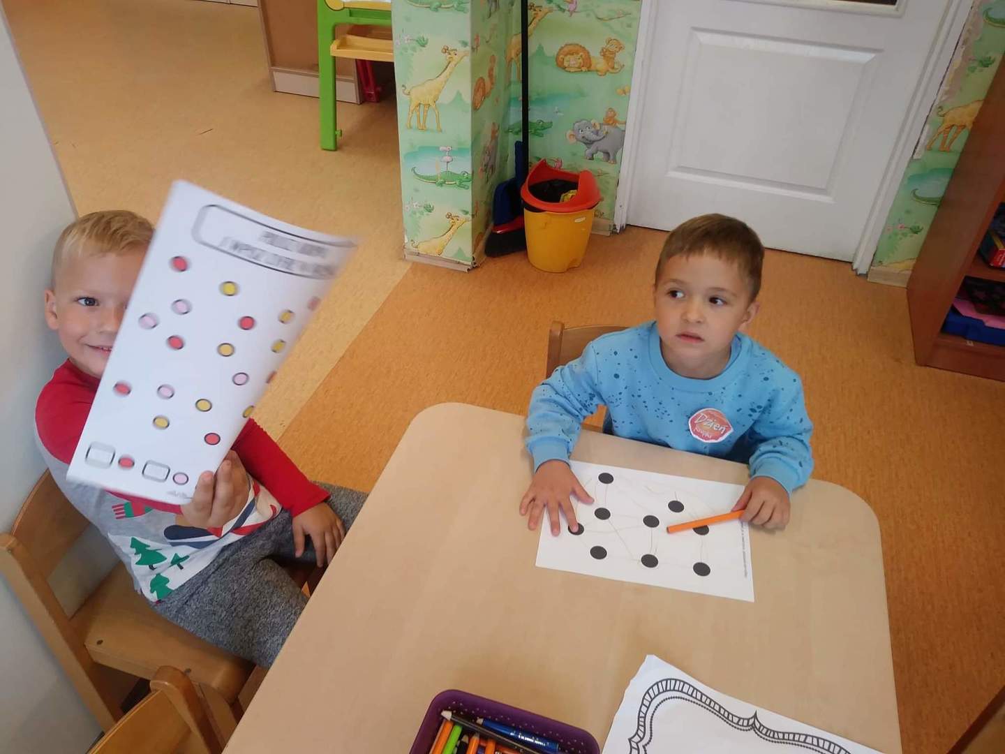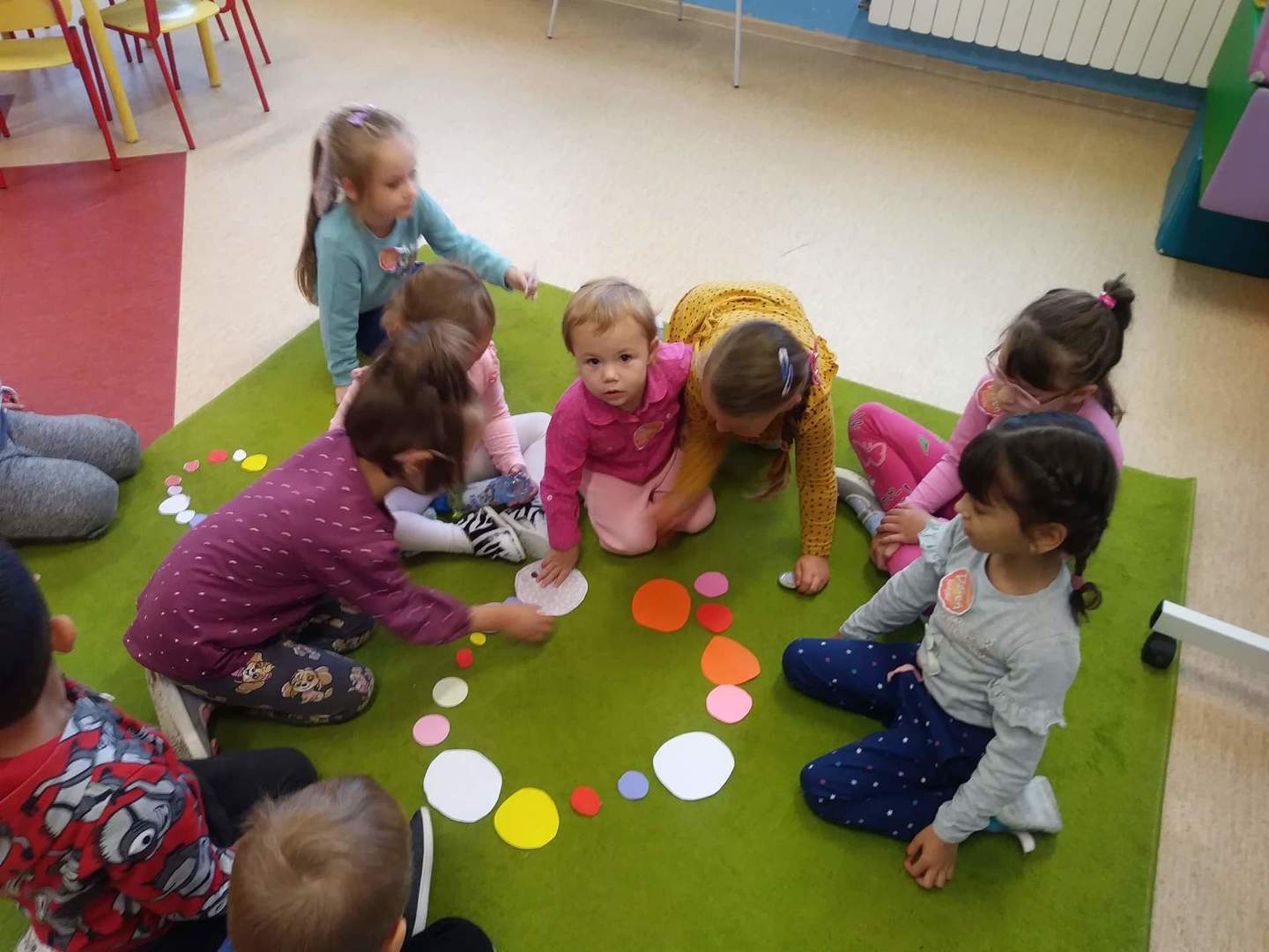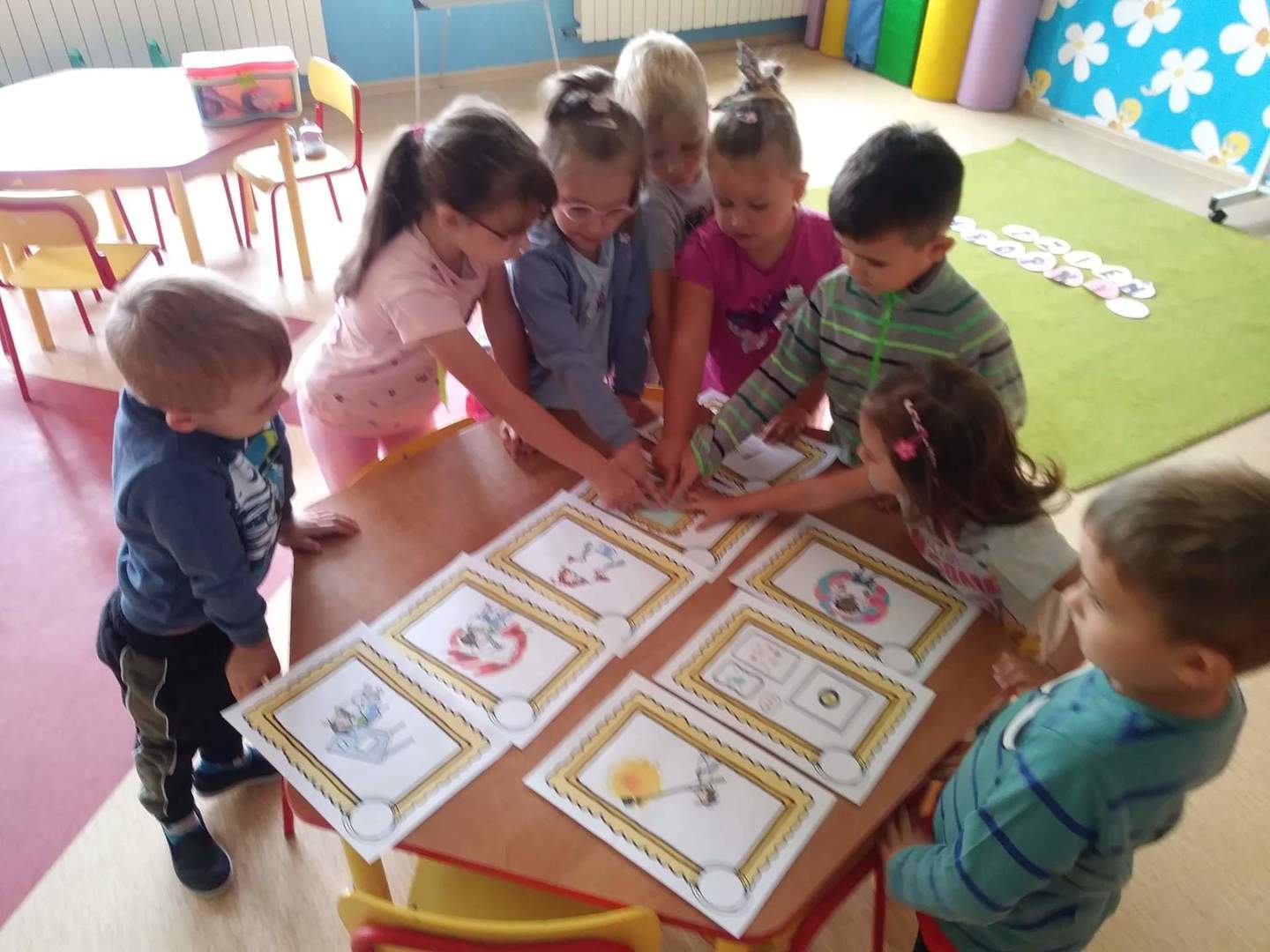 Międzynarodowy Dzień Kropki przypada 15 września. W tym dniu na dzieci uczęszczające do oddziału przedszkolnego, od samego rana, czekało wiele interesujących zadań, zabaw oraz ciekawych filmów edukacyjnych. Nie zabrakło również gimnastyki. Wszystkie dzieci mogły poczuć się jak prawdziwi detektywi – poszukując zaginionych kropek; jak artyści – tworząc różne figury oraz ciekawe prace plastyczne, jak modele – pozując do wspólnych oraz indywidualnych zdjęć. Wszystkie dzieci układały samodzielnie puzzle, starsze dzieci lepiły z plasteliny cyfrę 1. Każdy otrzymał specjalny znaczek. Na koniec zajęć każdy przedszkolak dostał pamiątkowy dyplom.