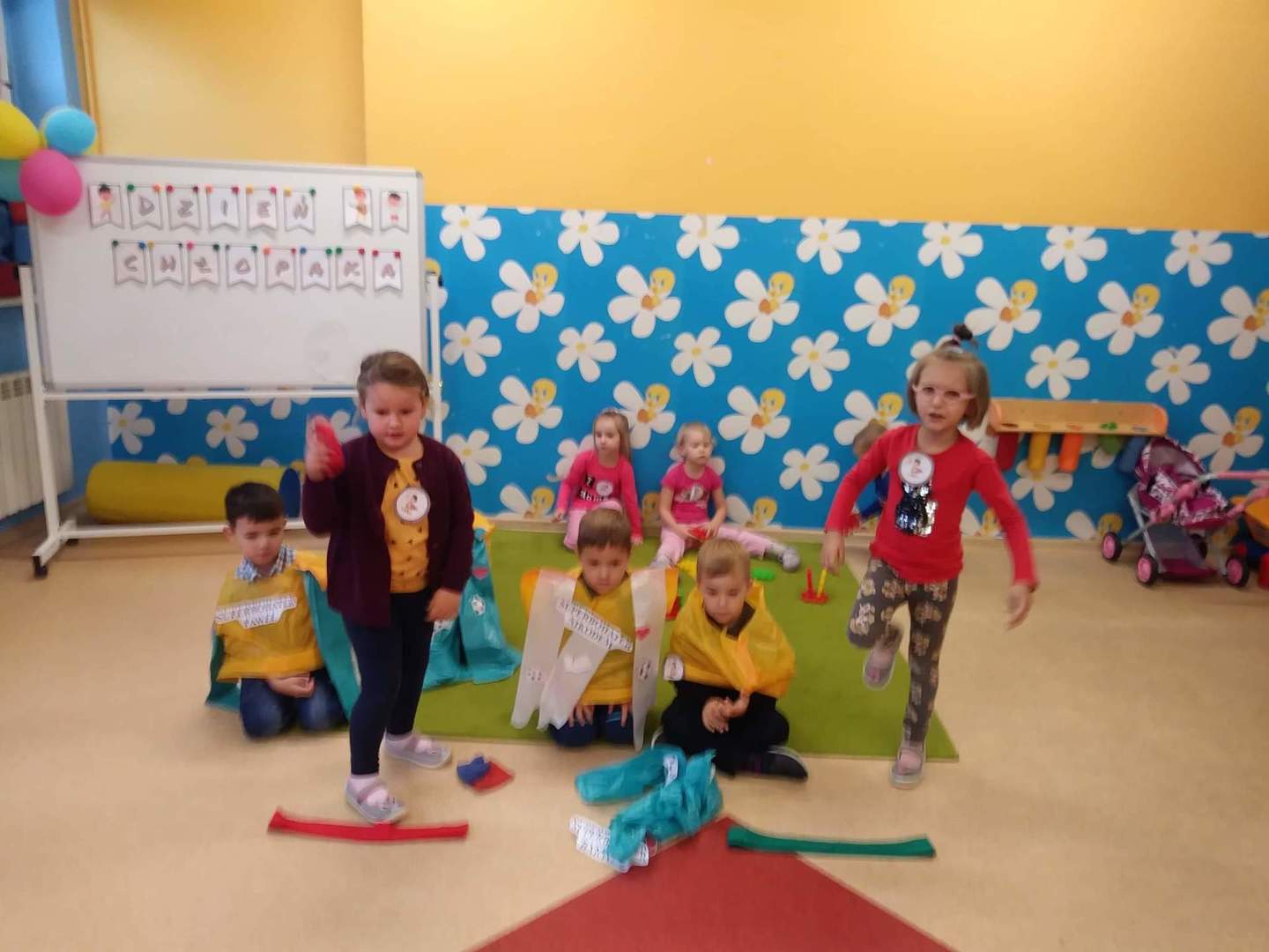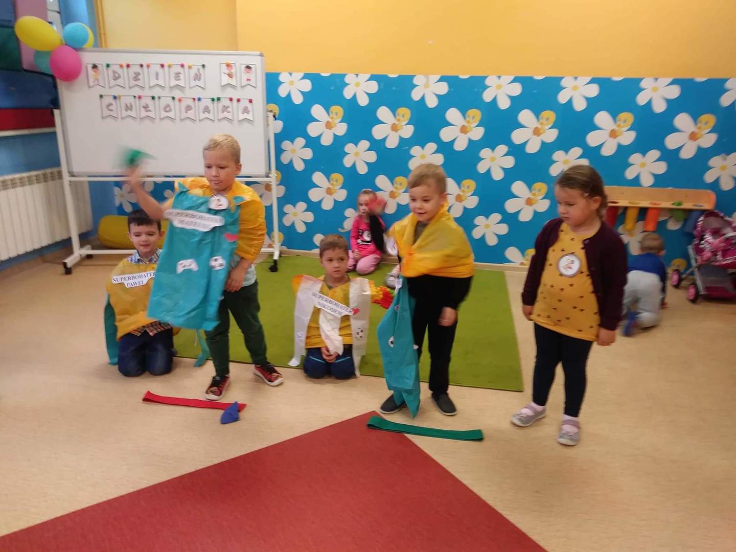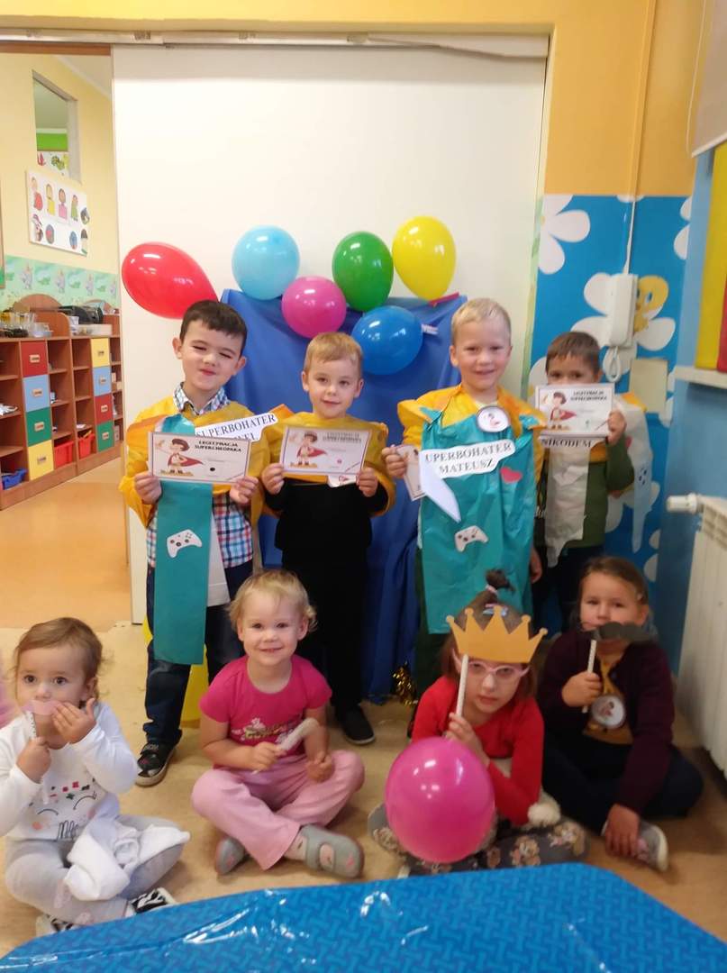 30 września w oddziale przedszkolnym obchodziliśmy Dzień Chłopaka. Na tę okazję dziewczynki przygotowały specjalnie dla swoich kolegów piękne krawaty! Nie zabrakło dobrej zabawy, tańców oraz pysznych słodkości. Każdy chłopak w tym dniu mógł włożyć przygotowaną pelerynkę SUPERCHŁOPAKA – SUPERBOHATERA. Chłopcy otrzymali również legitymację, dyplomy oraz ordery superchłopaków.