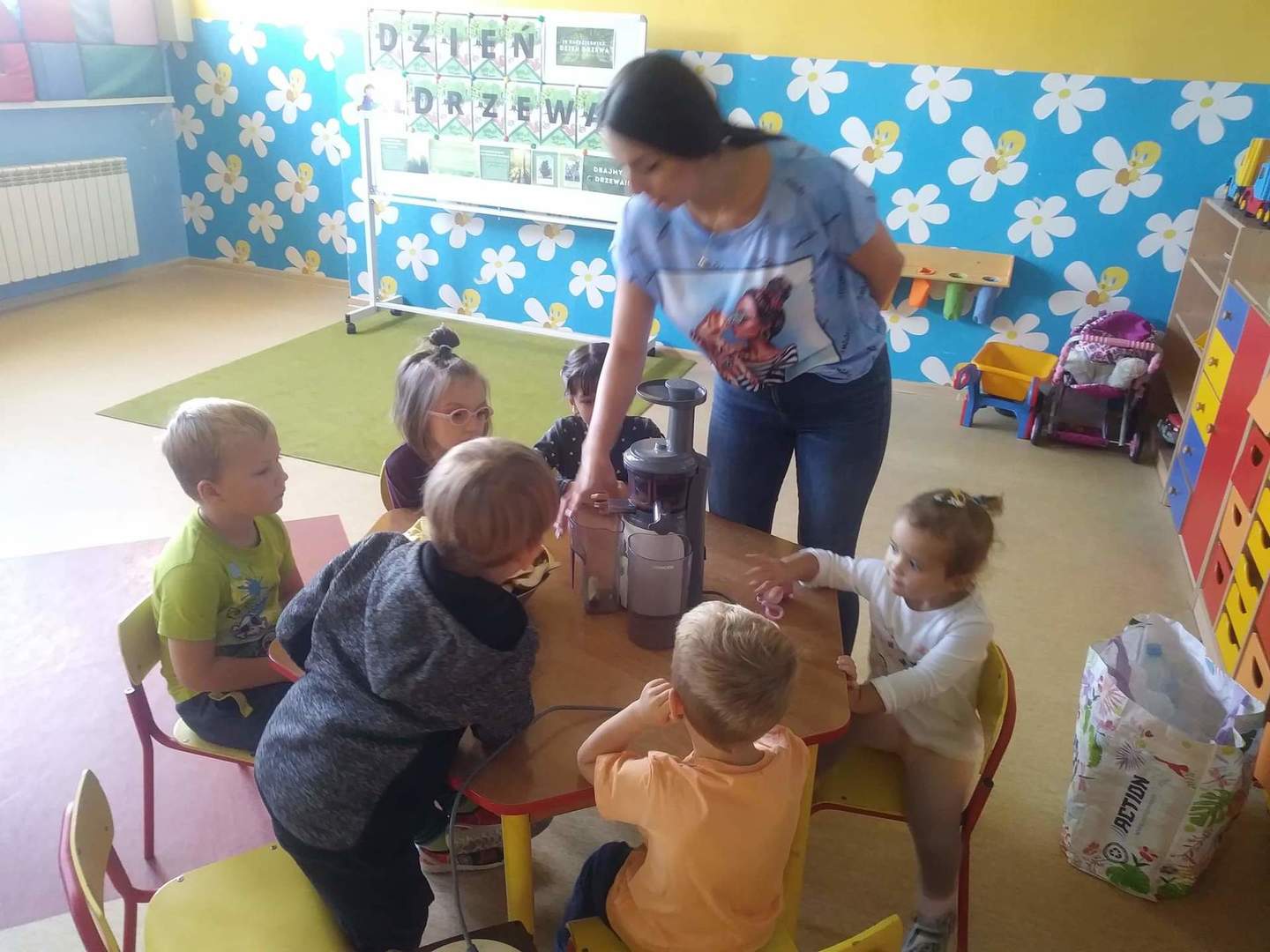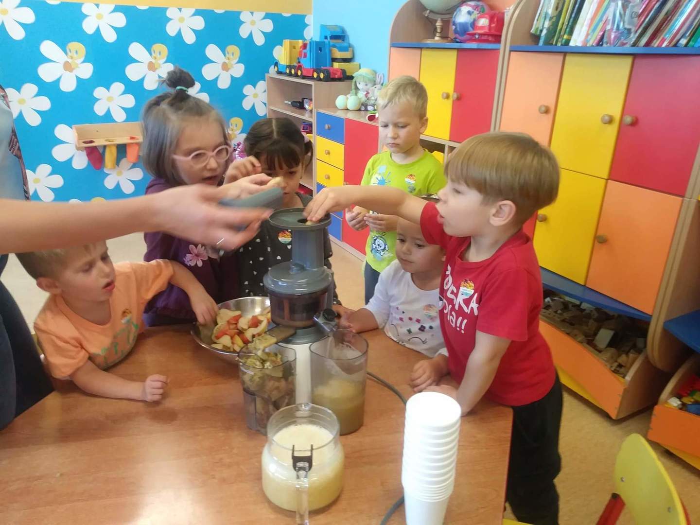 W środę w oddziale przedszkolnym odbyły się niezwykle pyszne zajęcia! Przedszkolacy z pomocą pań przygotowali smaczny, zdrowy oraz kolorowy sok z owoców. Pani Monice dziękujemy za udostępnienie niezbędnego sprzętu oraz przygotowanie pysznego soku!