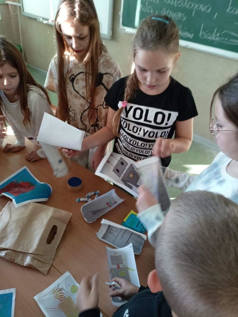 Pierwszo- i Trzecioklasiści uczęszczający na dodatkowe zajęcia w ramach innowacji pedagogicznej, tym razem precyzyjnie programowali własne podchody i jednocześnie uczestniczyli w misji ratunkowej Robota Kodeusza pomagając mu wrócić na swoją rodzinną planetę. Obydwie grupy wspaniale poradziły sobie z zadaniami i dotarły do celów, gdzie czekały na nich kosmiczne nagrody!