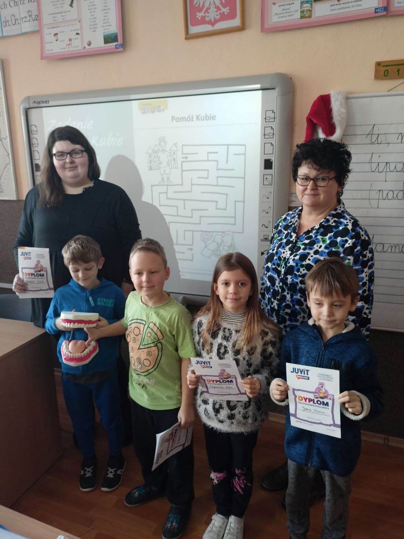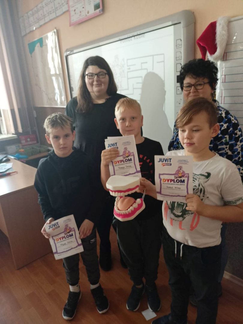 Wspaniałe prowadzące: pani Sylwia Klyta i pani Katarzyna Gasz w obrazowy sposób przekazały najistotniejsze informacje w tym zakresie i przypomniały zasady właściwego czyszczenia i pielęgnacji jamy ustnej.