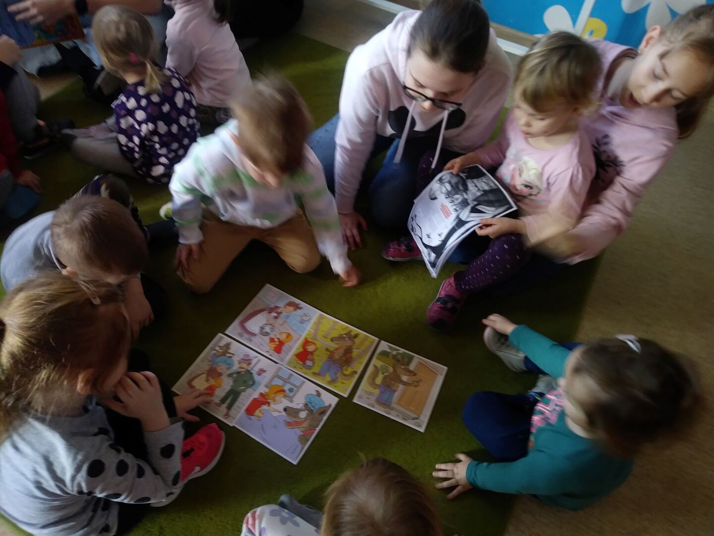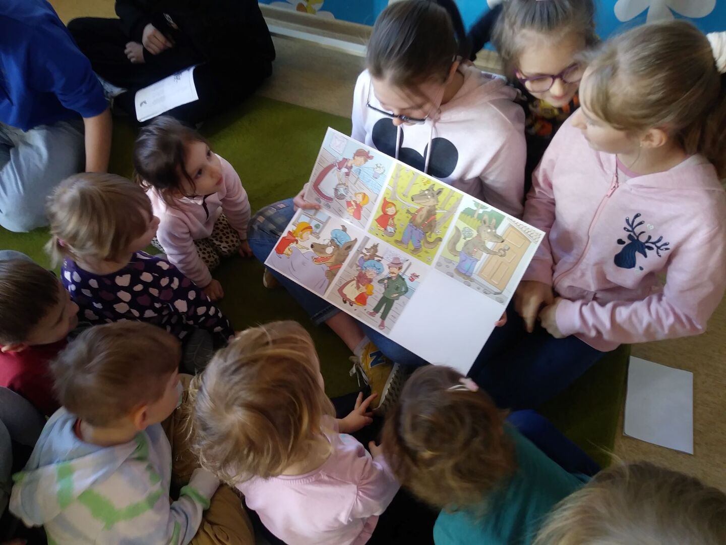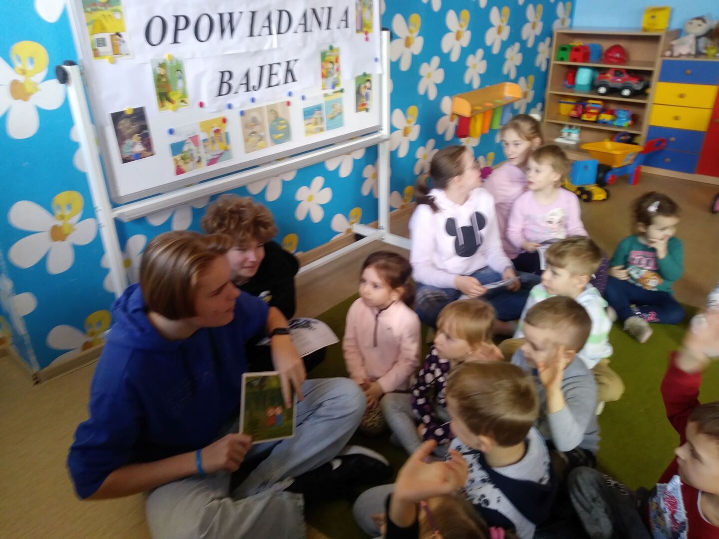 W Dniu Opowiadania Bajek, dzieci uczęszczające do oddziału przedszkolnego gościły uczniów klasy VIII, którzy opowiedzieli wiele ciekawych bajeczek. To było bardzo ciekawe spotkanie!