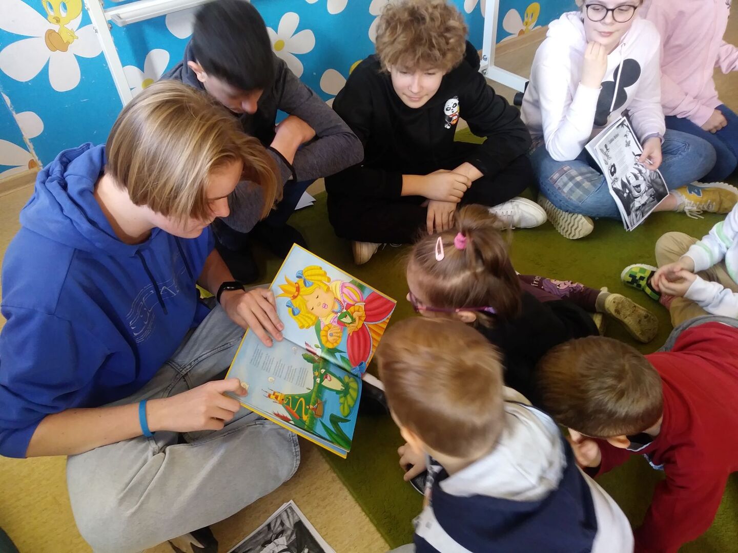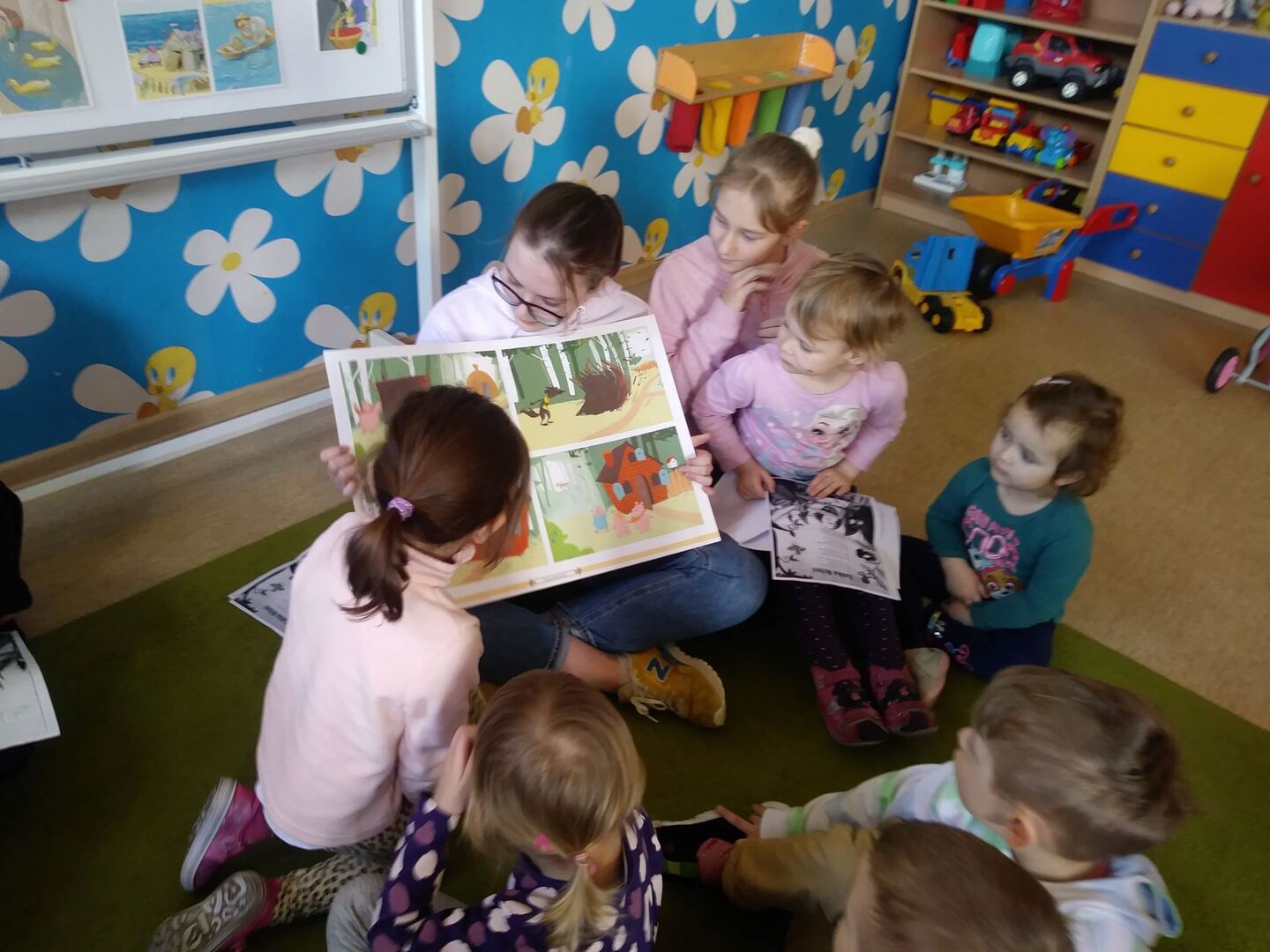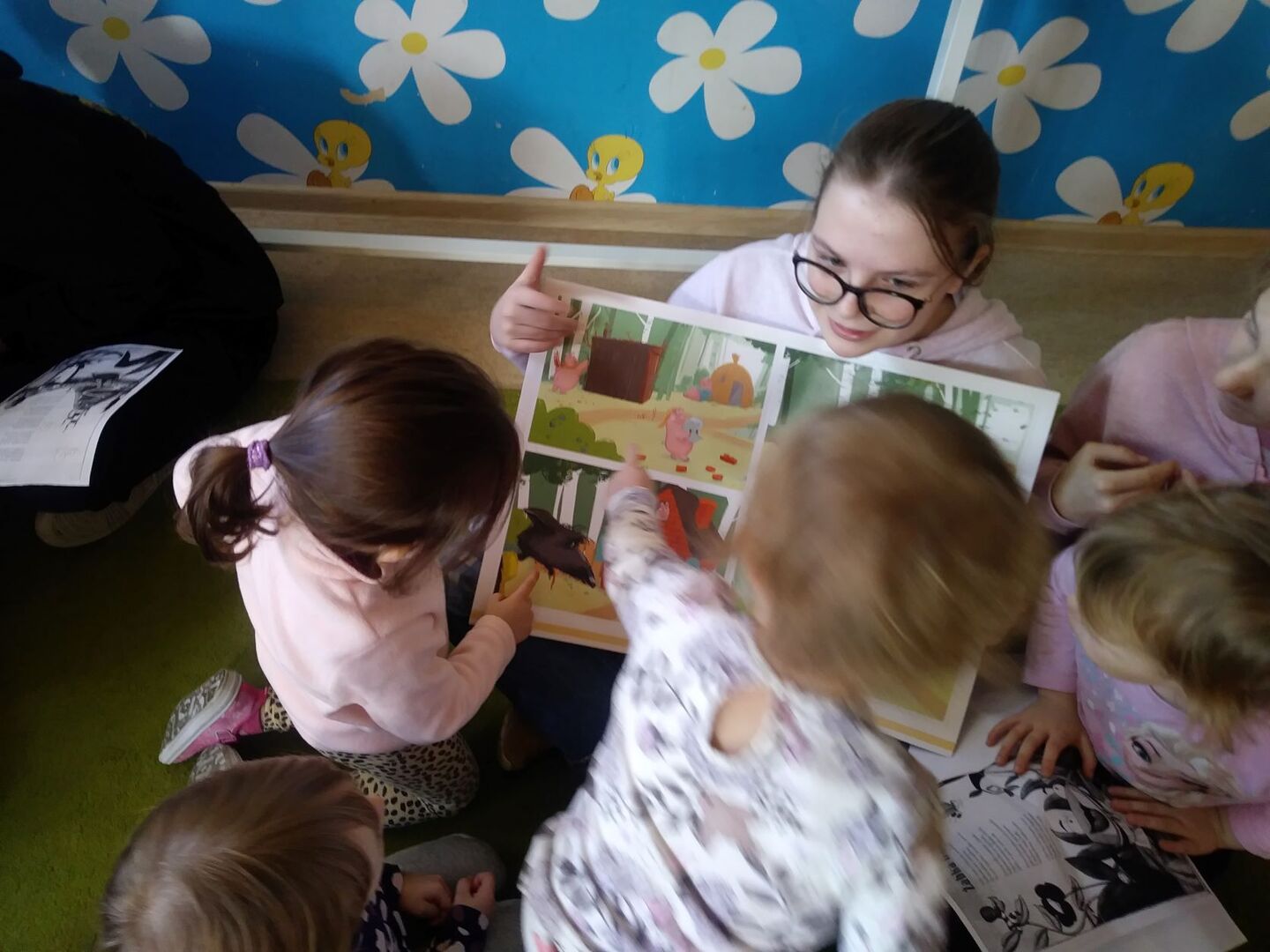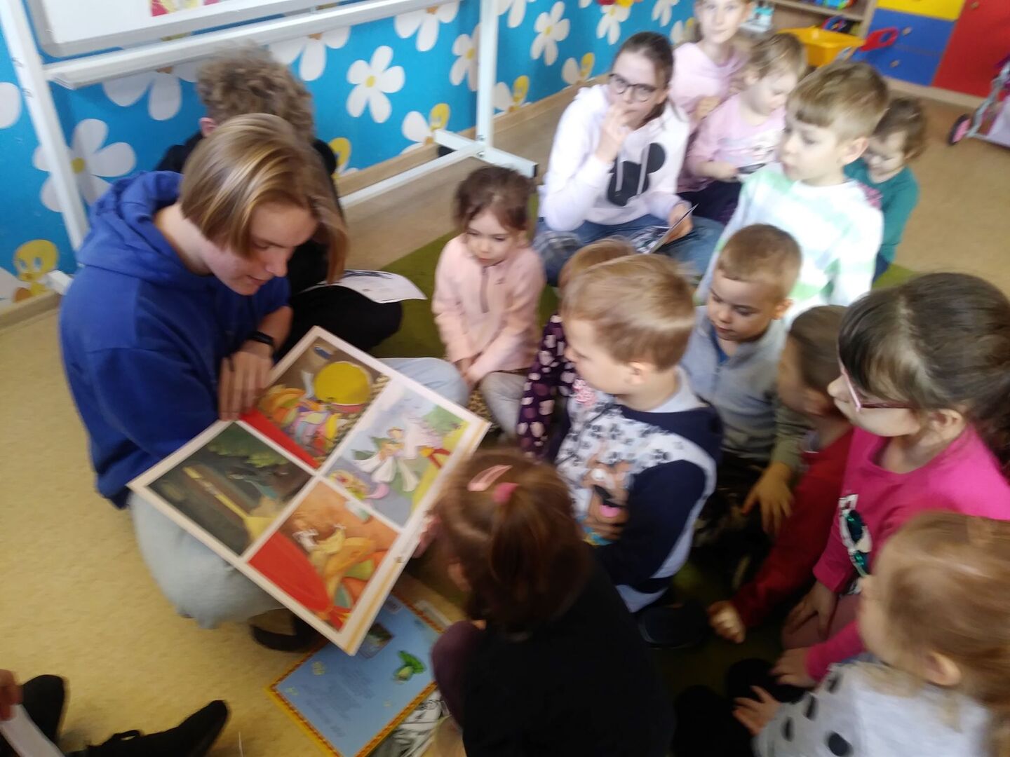 W Dniu Opowiadania Bajek, dzieci uczęszczające do oddziału przedszkolnego gościły uczniów klasy VIII, którzy opowiedzieli wiele ciekawych bajeczek. To było bardzo ciekawe spotkanie!
