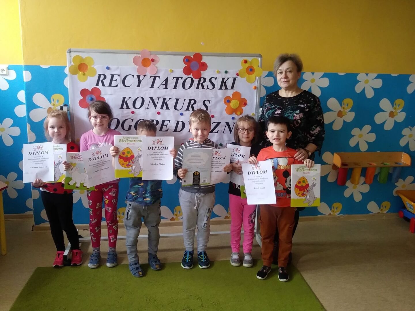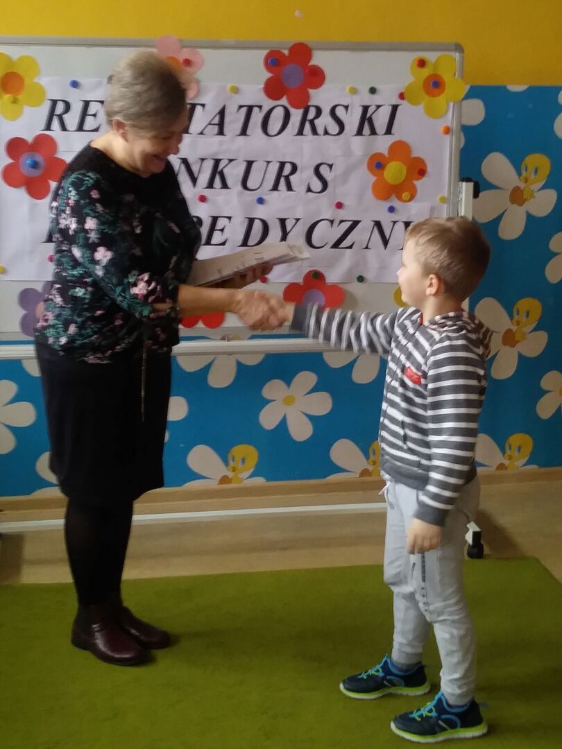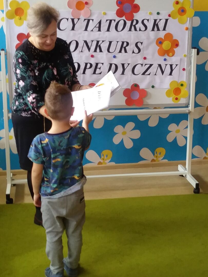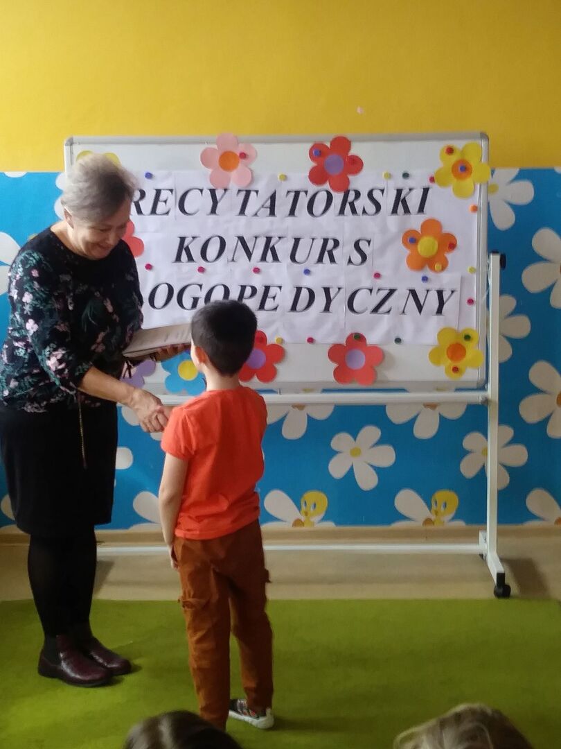 Jak co roku, w naszym przedszkolu odbył się Recytatorski Konkurs Logopedyczny, w którym udział wzięli przedszkolacy uczęszczający na terapię logopedyczną. Podczas konkursu gościliśmy Panią Dyrektor Mariolę Kuliś, która rozdała dzieciom dyplomy za udział w konkursie oraz drobne upominki. Serdecznie dziękujemy!