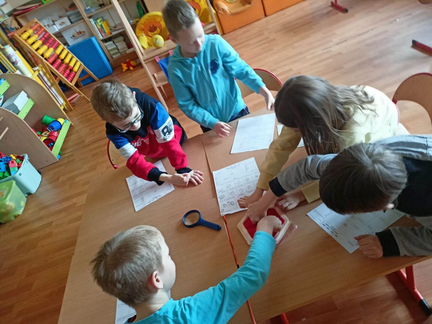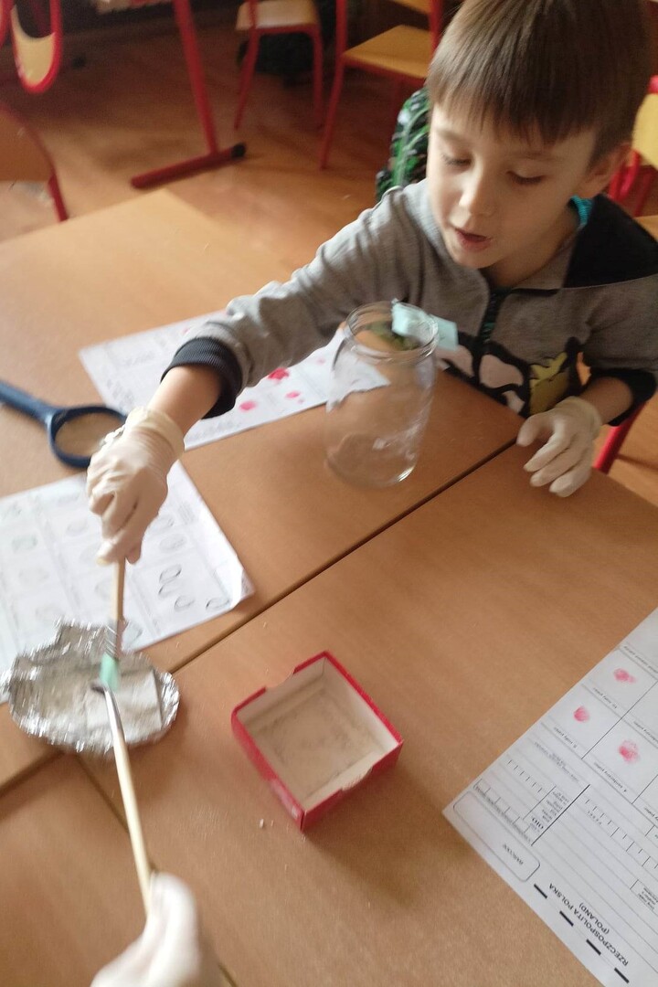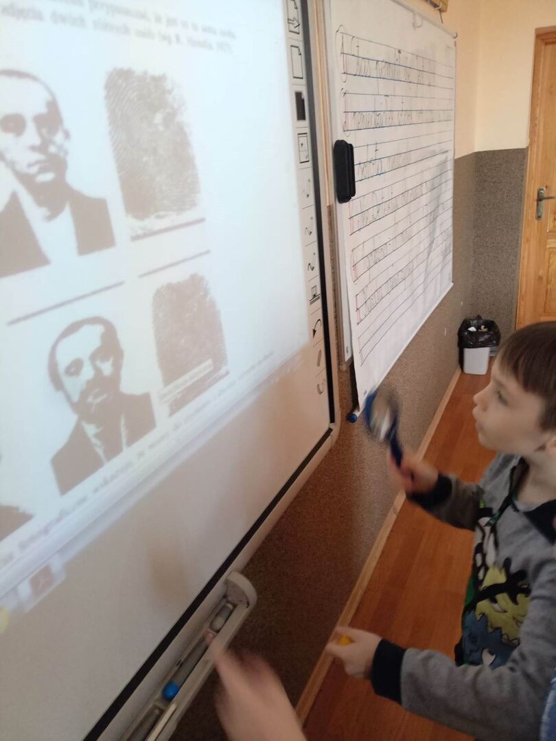 Postać Detektywa Pozytywki i jego zagadki omawiane podczas zajęć edukacyjnych z p. Darią Sławik zainspirowały dociekliwych Pierwszoklasistów do poszerzenia swojej wiedzy na temat daktyloskopii. Dzięki ćwiczeniom, eksperymentom i filmowi edukacyjnemu z udziałem kryminologa uczniowie dowiedzieli się, kiedy i w jakim celu śledczy posługują się tą techniką. Poznali kulisy pracy profesjonalnych ekip dochodzeniowych oraz inne techniki zabezpieczania śladów, które na co dzień stosują detektywi. Przy użyciu nieco mniej profesjonalnych środków (jak wosk, tusz czy sypki puder) Pierwszacy mieli okazję samodzielnie zebrać odciski palców, sprawdzić swój ślad daktyloskopijny i rozwiązać zagadkę wyjedzonych przetworów. =)