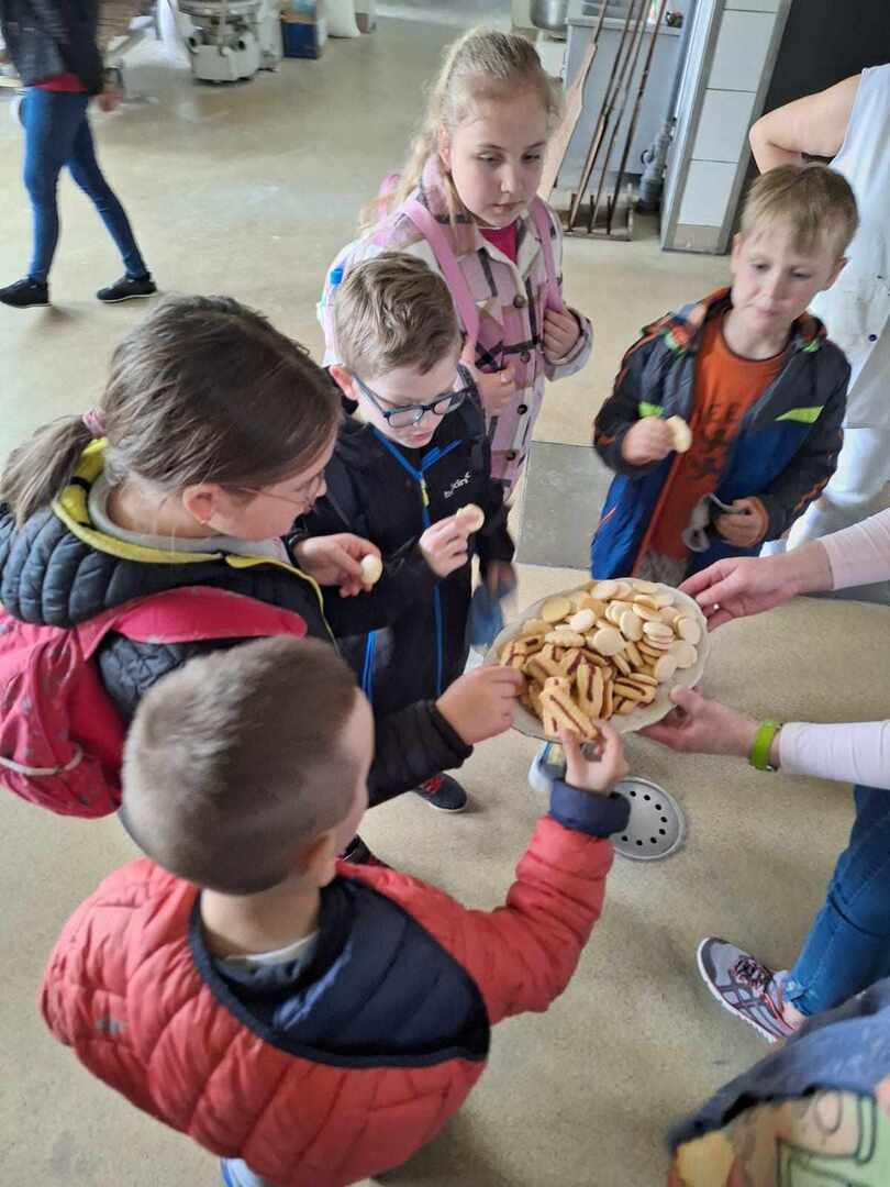 19. maja br. uczniowie klasy I: Zofia, Adam, Błażej, Marcin, Jakub oraz uczennice klasy IV: Liliana i Lena w ramach preorientacji zawodowej udali się na wycieczkę do Woźnik, gdzie czekała moc atrakcji. Najpierw uczniowie odwiedzili Miejsko-Gminną Bibliotekę Publiczną im. Józefa Lompy w Woźnikach, tam zapoznali się z pracą bibliotekarza, oglądali wiele interesujących książek oraz wysłuchali bajkę odczytaną techniką kamishibai. Później wspólnie udaliśmy się do Piekarni Gminnej Spółdzielni SCH w Woźnikach gdzie dowiedzieliśmy się na czym polega trudna praca piekarza, co jest potrzebne do wykonywania tego zawodu. Mieliśmy również możliwość spróbowania niesamowitych smakołyków: ciasteczek, bułeczek. Udaliśmy się również do biura GS SCH , by zapoznać się z pracą księgowej, jak również urządzeniami biurowymi. Dzięki tej wizycie wiemy już, że ten zawód nie jest nudny, lecz jest ciekawym wyzwaniem. Ostatnim punktem wycieczki była budka z przysmakami, w której zjedliśmy pyszne lody, gofry.