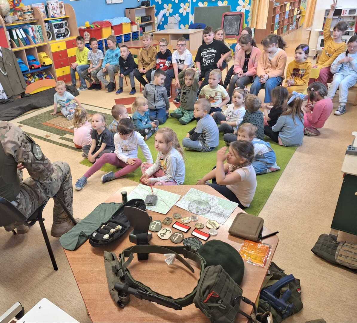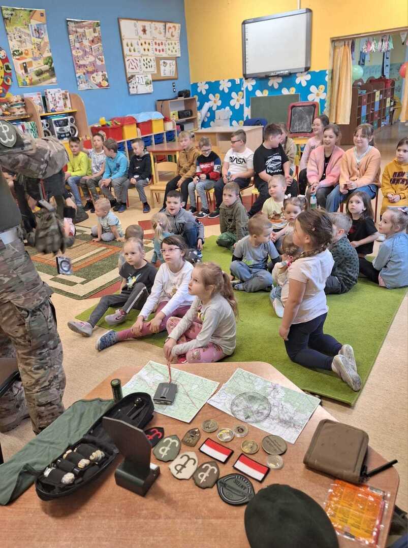 17. maja br. w ramach preorientacji zawodowej dzieci uczęszczające do oddziału przedszkolnego oraz uczniów klas I i III odwiedził Żołnierz. Serdecznie dziękujemy za wyjątkowe, niezwykle interesujące, pouczające i niezapomniane spotkanie!