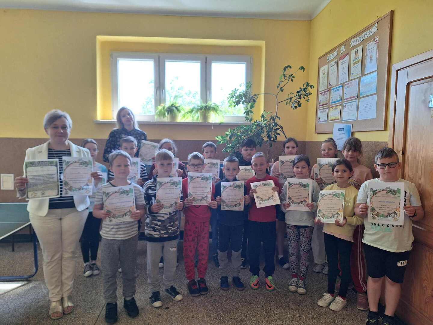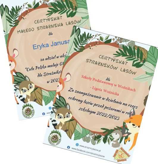 Łącznie z pracami naszych uczniów do organizatorów dotarło aż 25 920 cudownych kartek z całej Polski, dzięki czemu stworzono 5 GIGA laurek, a każda z nich składa się z 5184 prac małych artystów i zawiera najszczersze życzenia płynące z wielkich serduszek. W zamian za piękny gest uczestnicy otrzymali pamiątkowe dyplomy, a niebawem Strażnikom Lasów z naszego regionu giga-laurki zostaną wręczone osobiście.