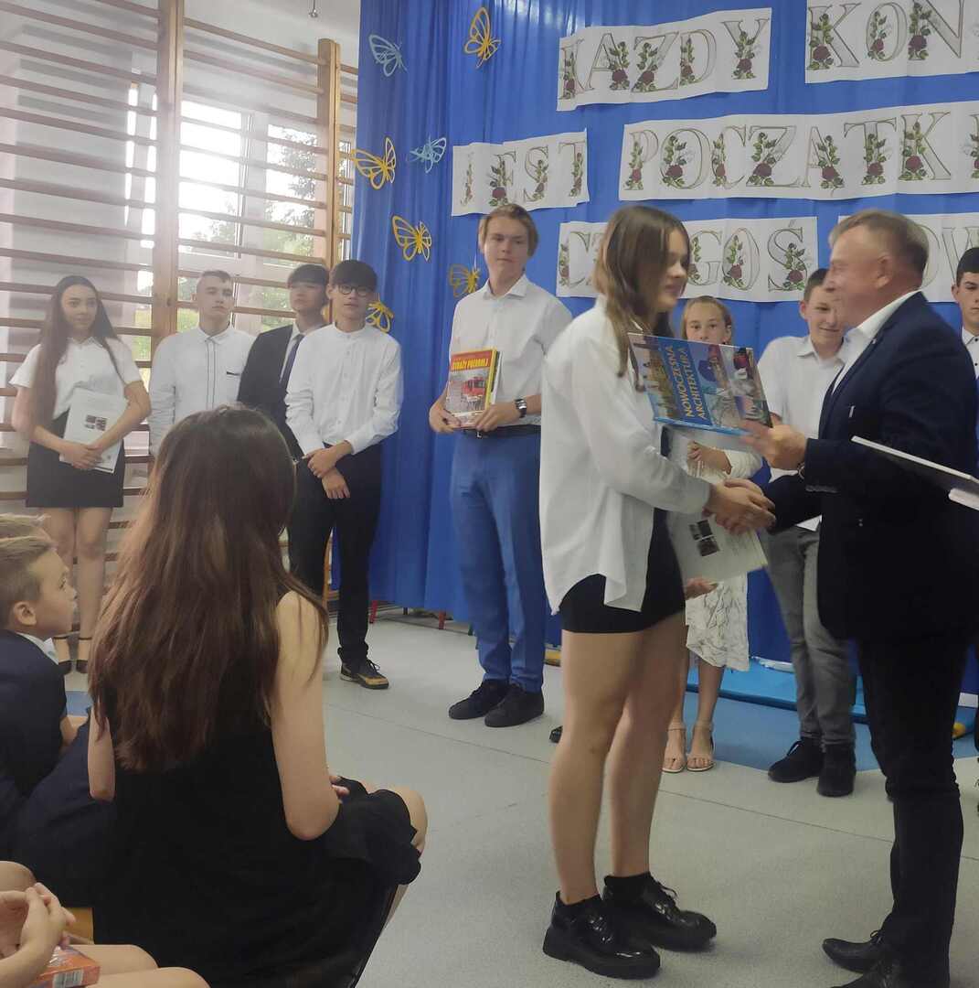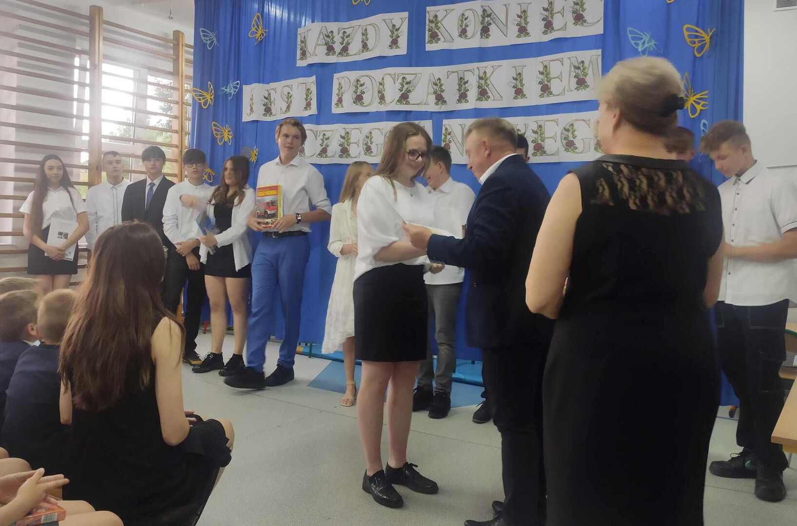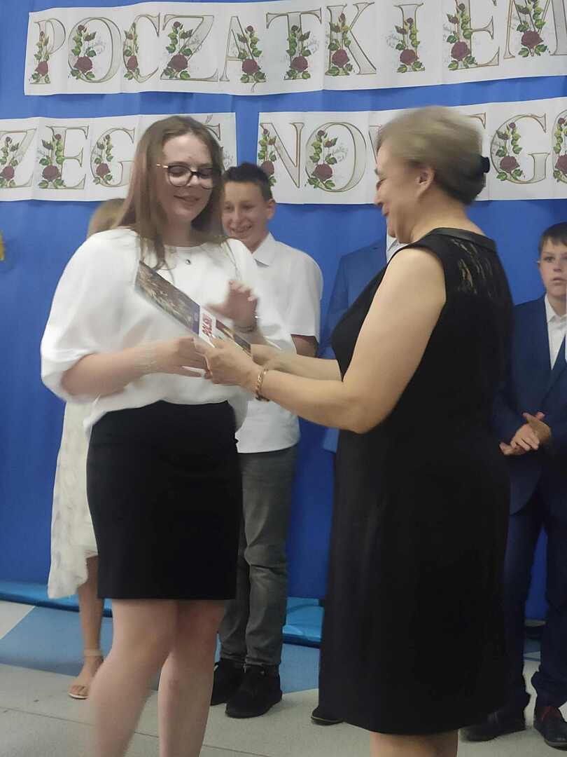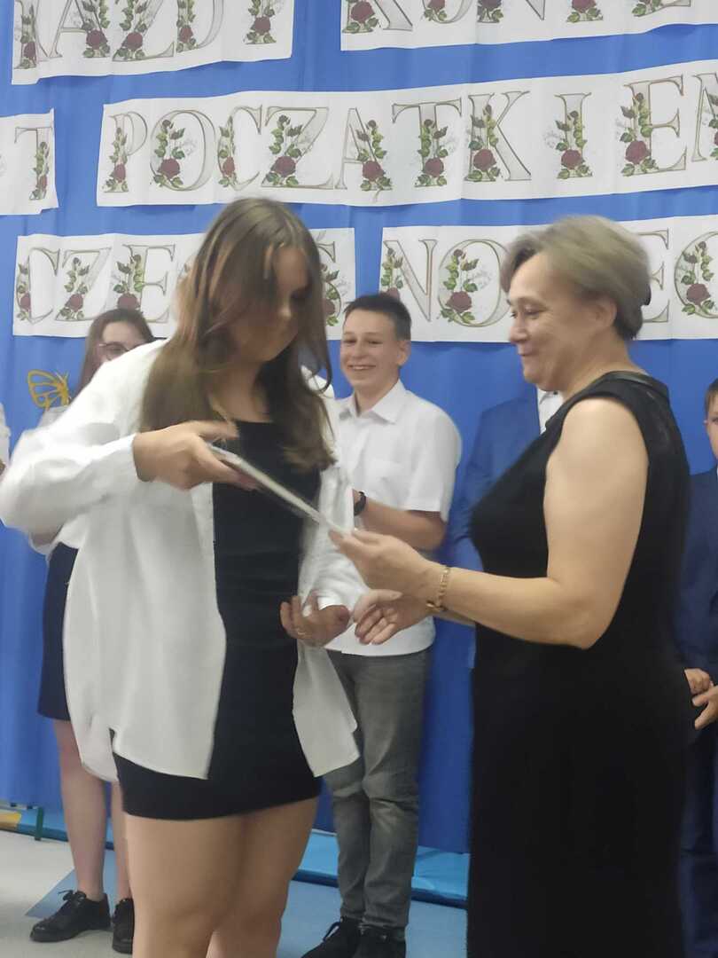 dyrektor wręczyła świadectwa ósmoklasistom i uczniom młodszych klas. Tego dnia rozdano