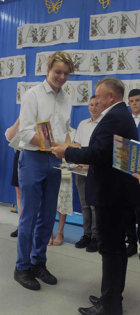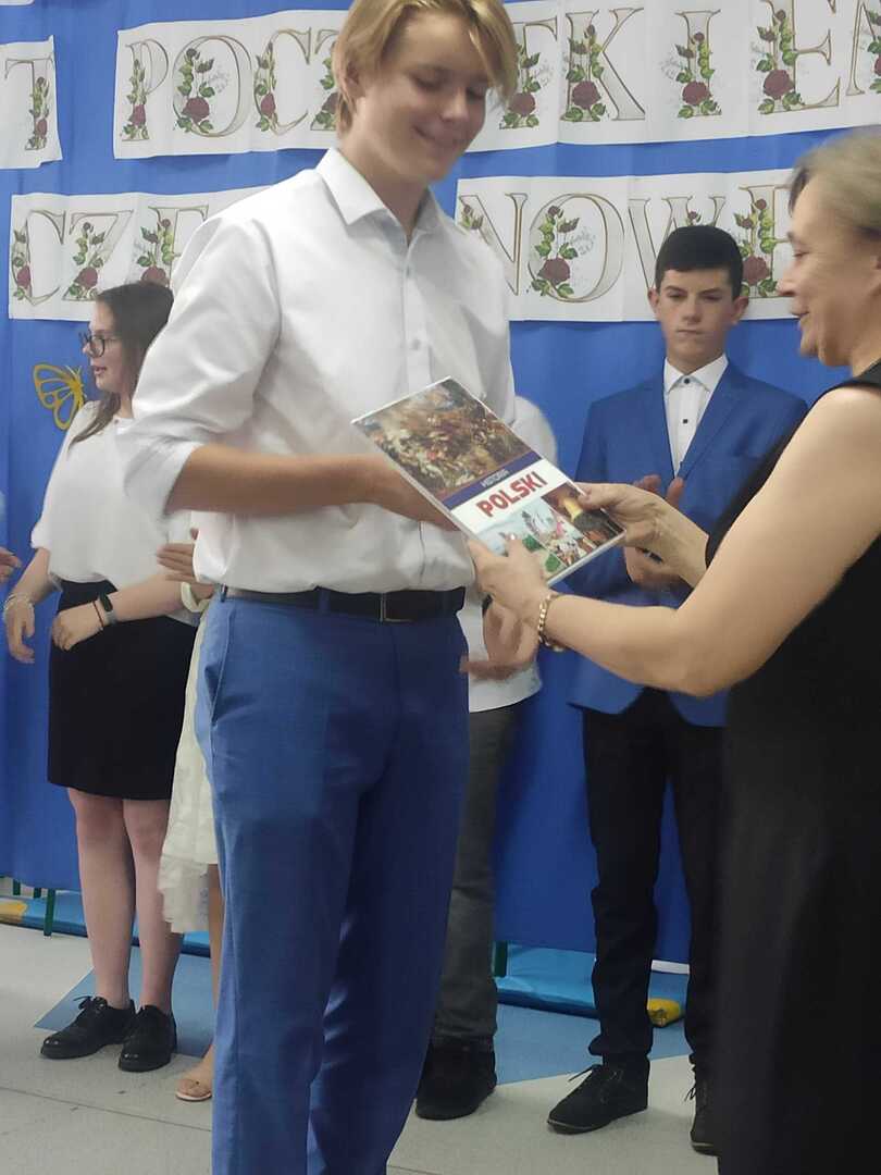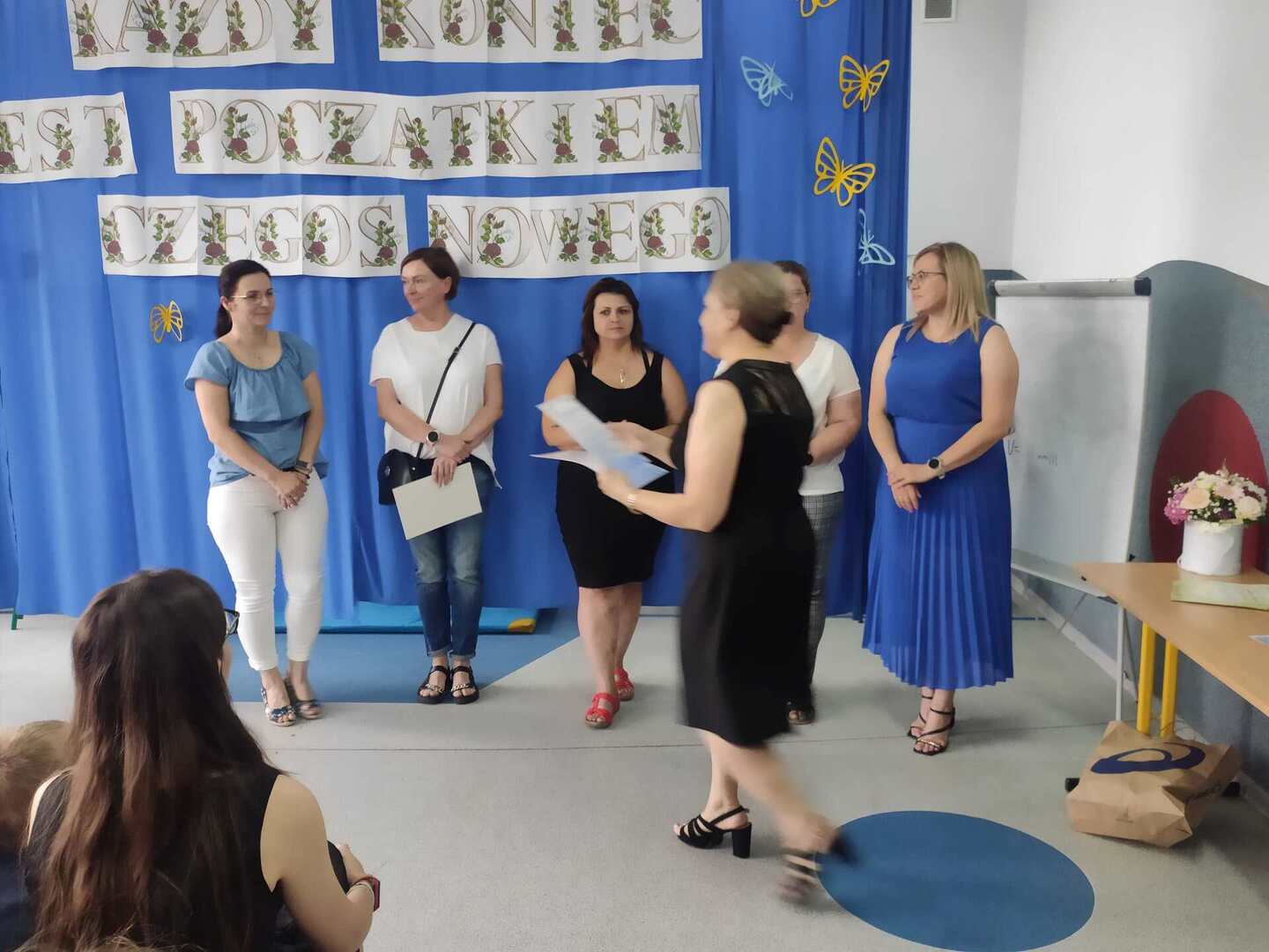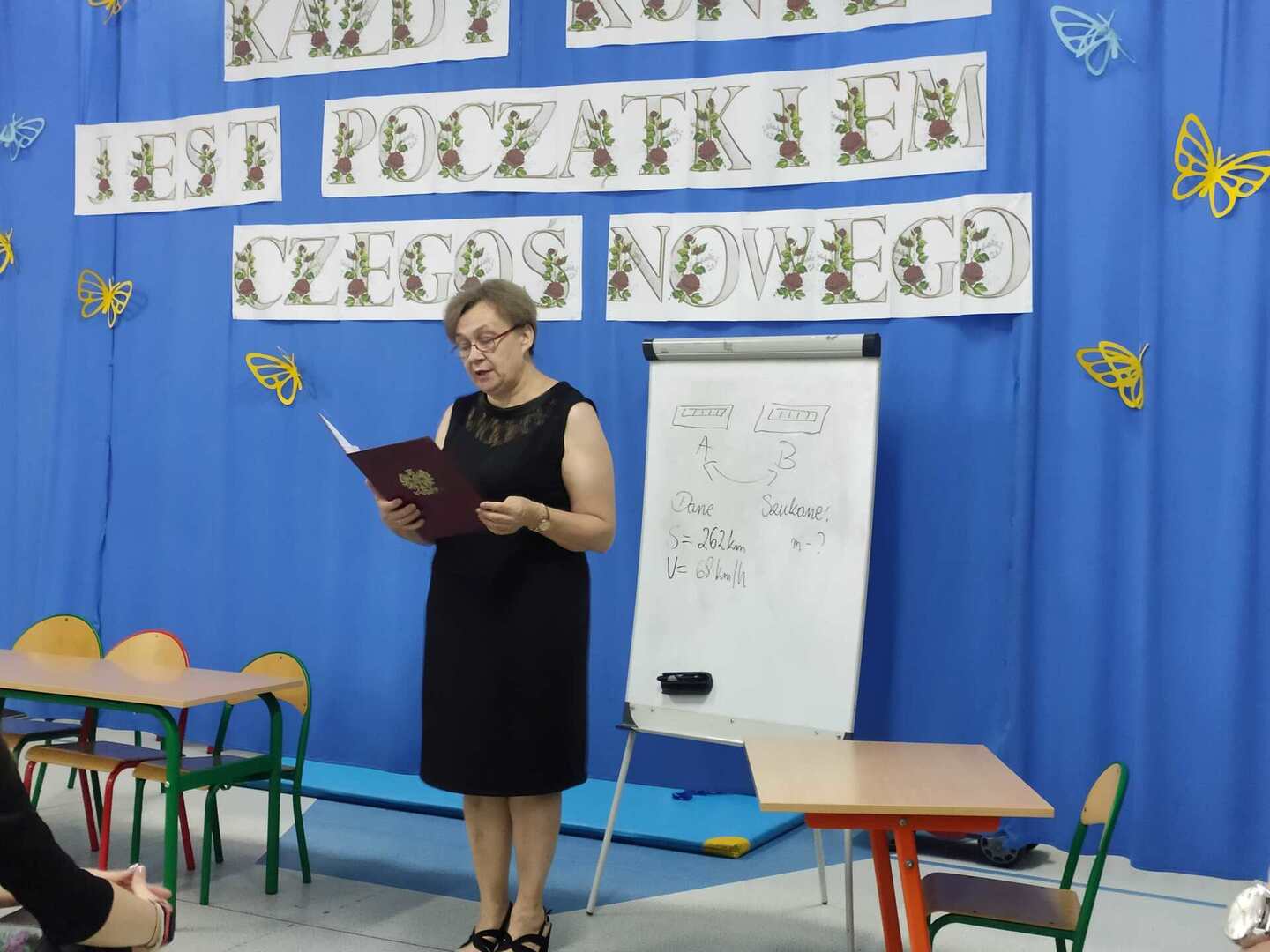 dyrektor wręczyła świadectwa ósmoklasistom i uczniom młodszych klas. Tego dnia rozdano