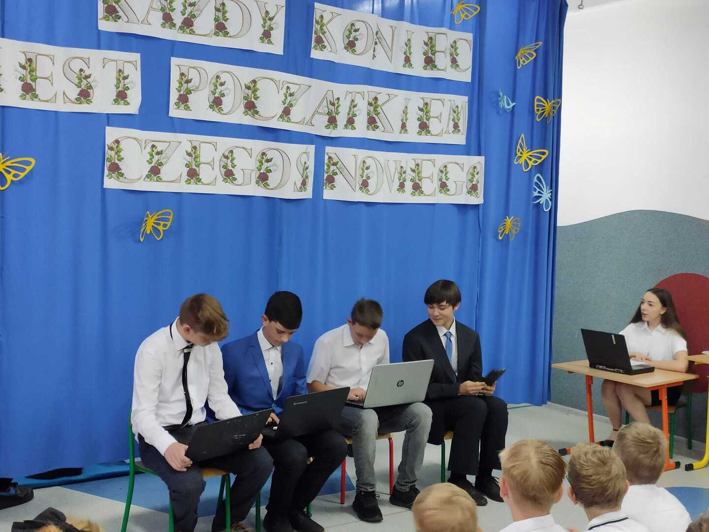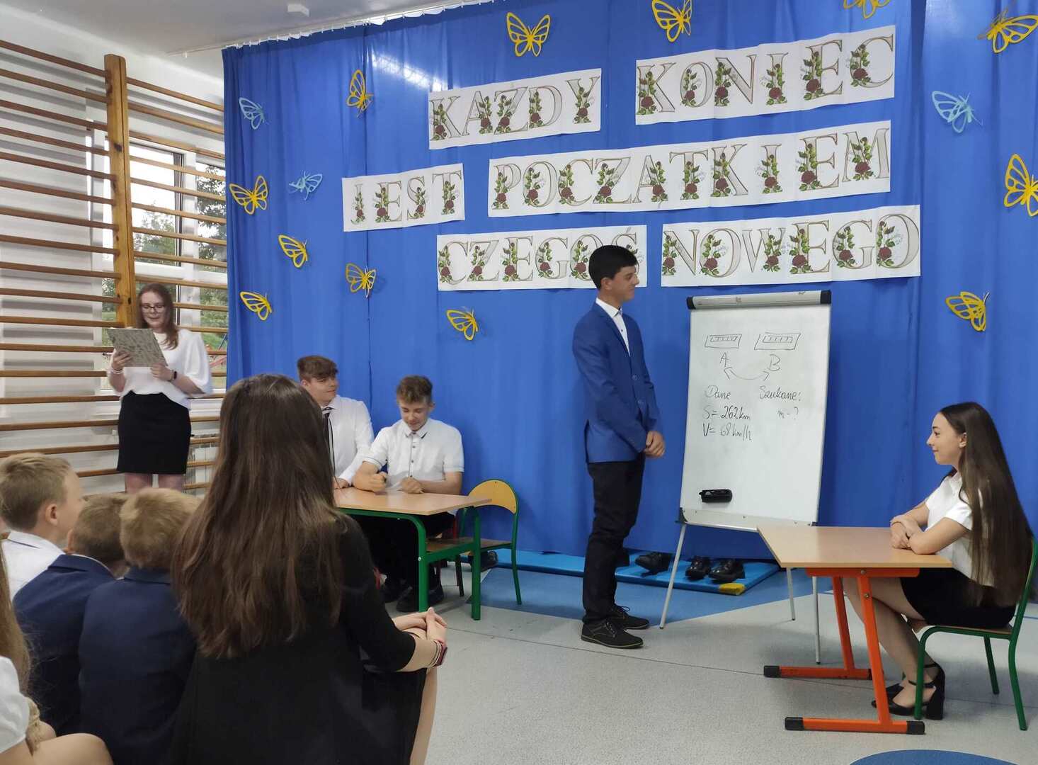 szkolnego. Klasa ósma pożegnała się z murami naszej szkoły, przedstawiając skecz na temat