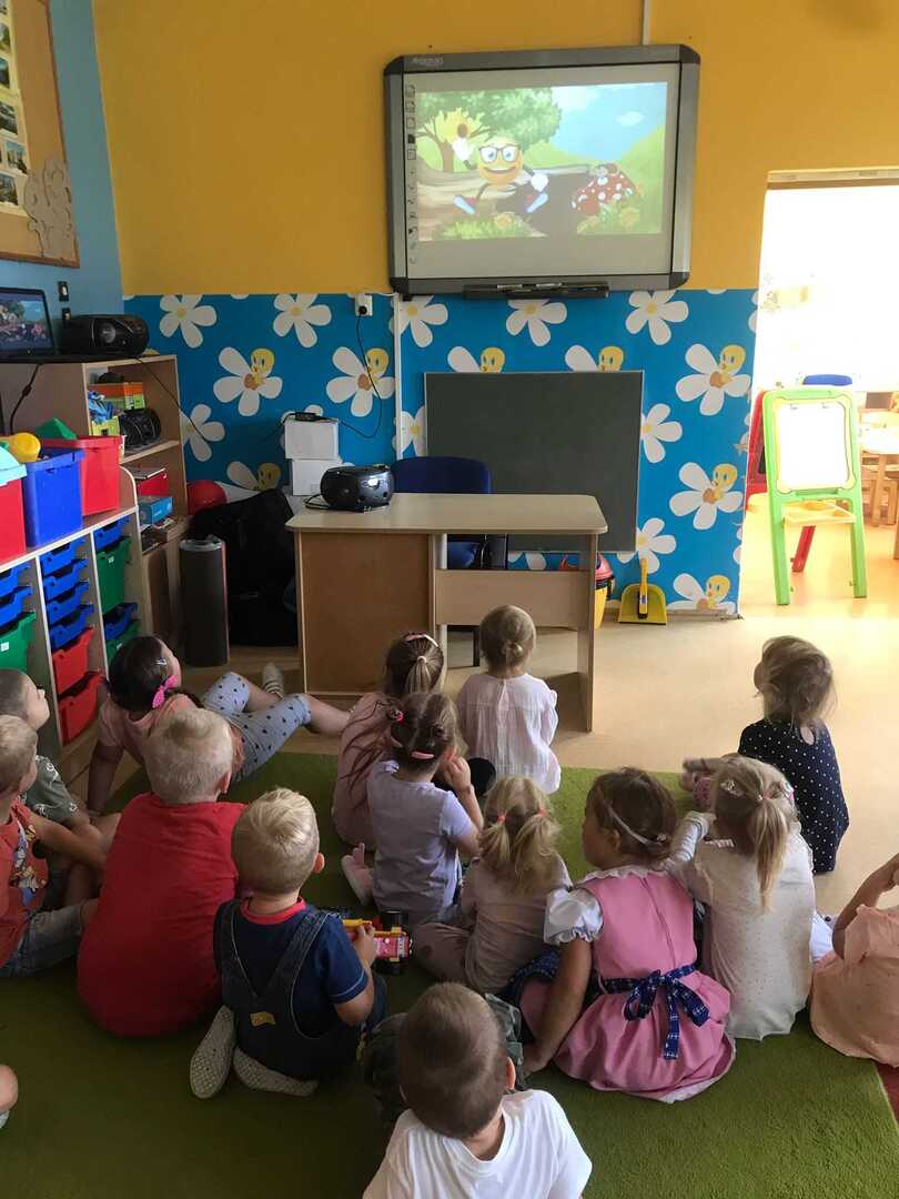 15 września dzieci w naszym przedszkolu obchodziły Międzynarodowy Dzień Kropki – święto kreatywności, pokonywania ograniczeń oraz umacniania wiary we własne siły. Na zajęciach przedszkolaki uważnie obejrzały na dużym ekranie film, dzięki któremu dowiedzieliśmy dlaczego świętujemy Dzień Kropki.