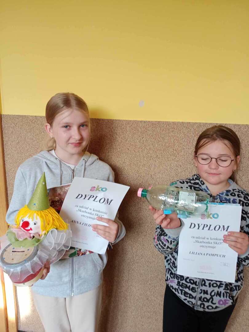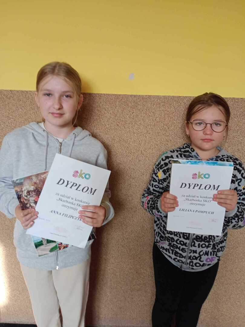 Uczniowie naszej szkoły jak co roku wzięli udział w konkursie „Skarbonka SKO”. Pięknie przygotowane skarbonki są ozdobą szkolnego korytarza. Pamiątkowe dyplomy oraz książki otrzymały uczennice: