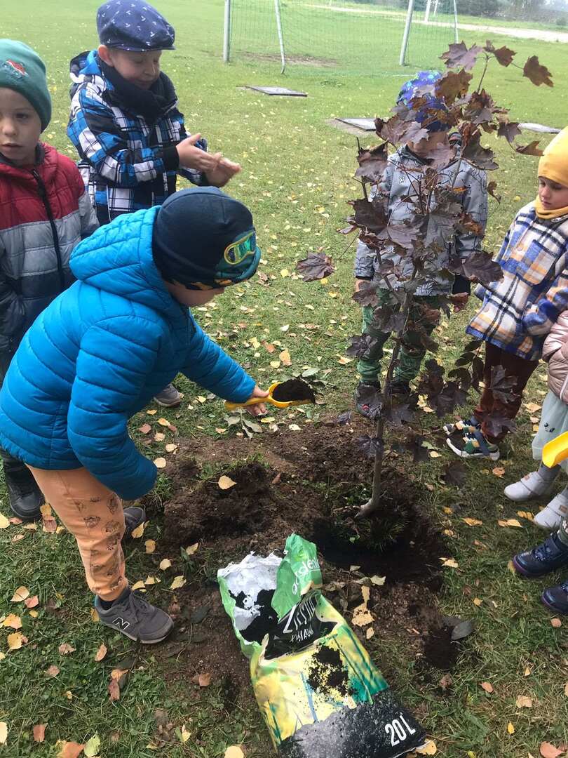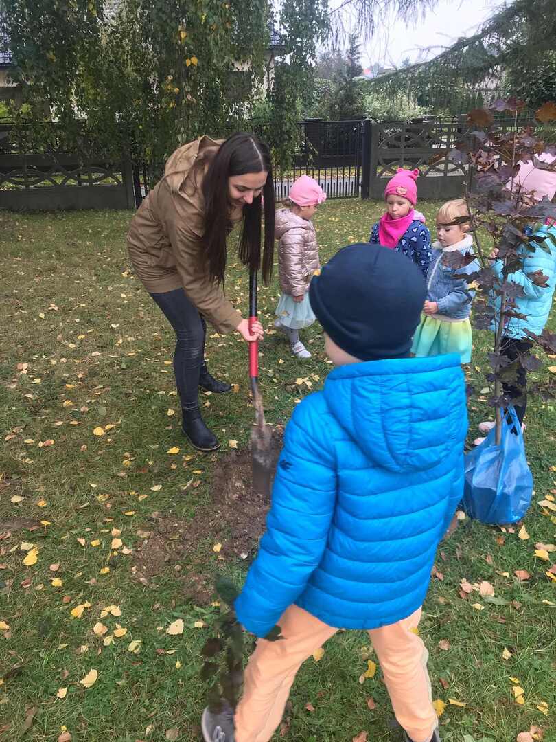 . No i jak przystało na prawdziwych przyjaciół przyrody - Przedszkolaki uczciły Święto Drzewa w sposób wyjątkowy – posadzili drzewko – Klon czerwony