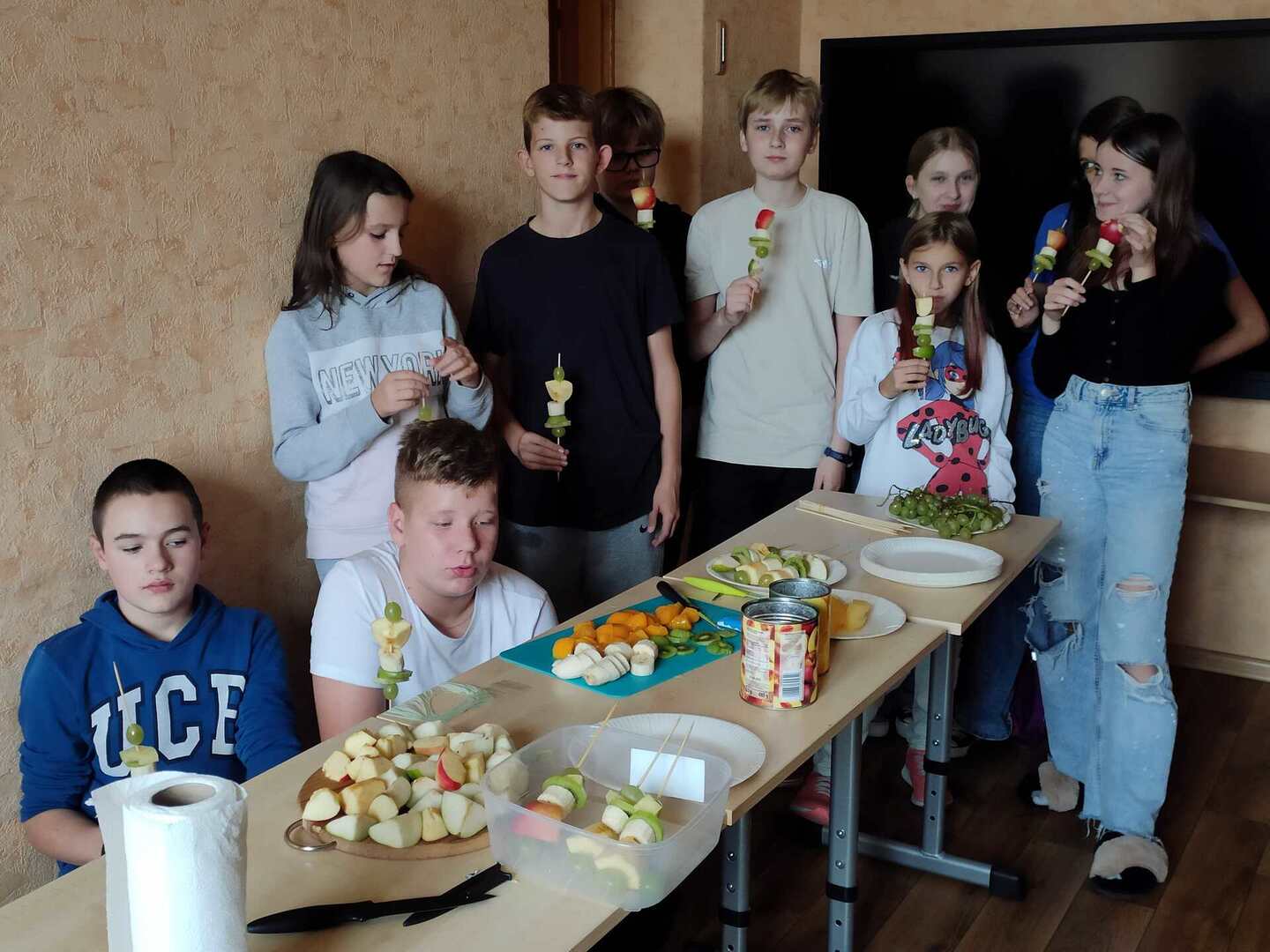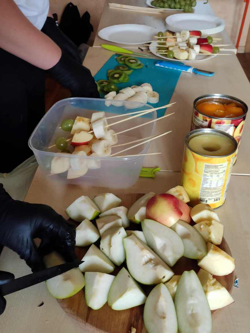 Szymon i Maciej przygotowali dla całej klasy pyszne owocowe szaszłyki