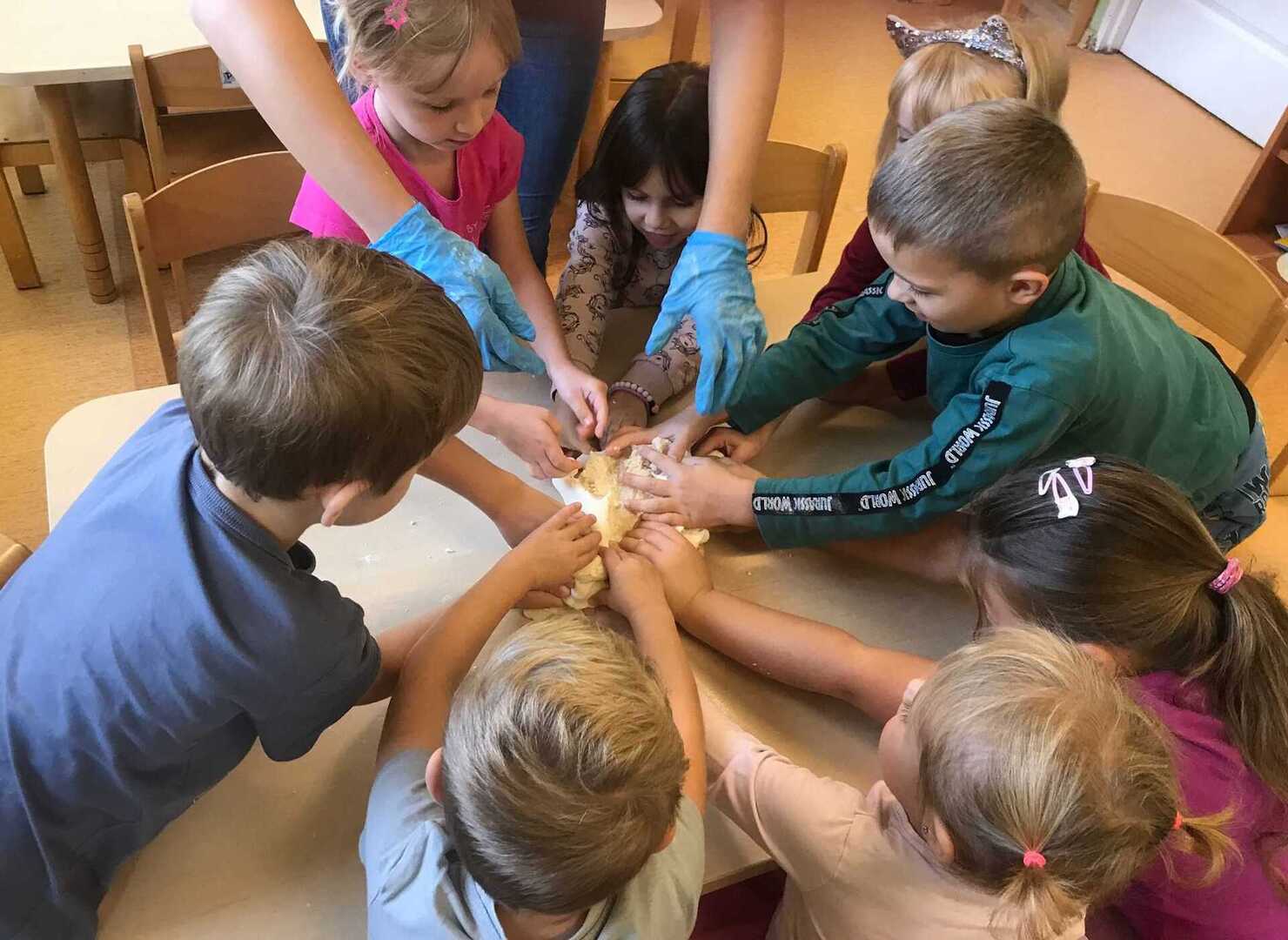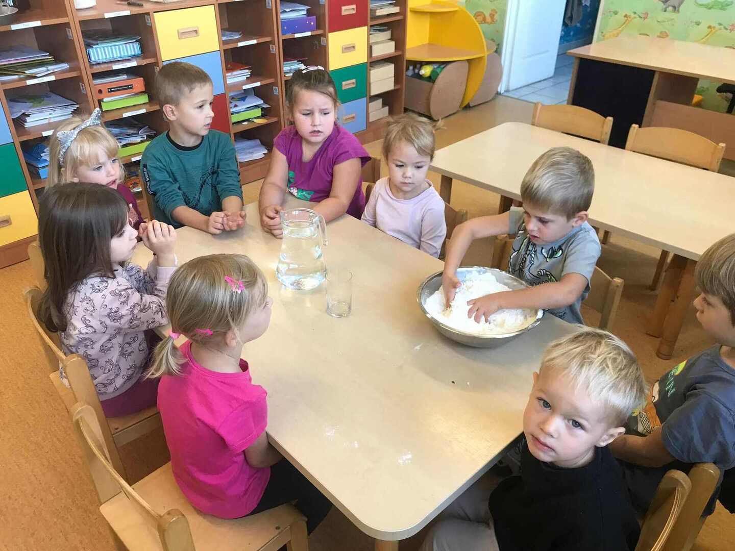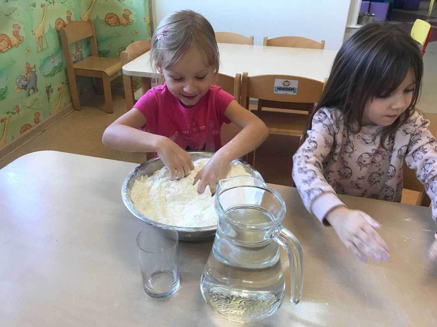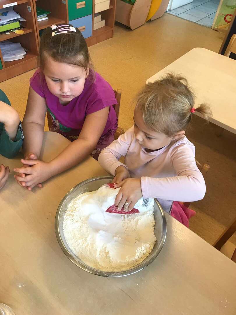 Przedszkolaki musiały najpierw poznać przepis, wsypać do miski składniki oraz je wymieszać. Następnie nadały kształt jeżykowi, uformowały mu nosek i oczka, a także ostrożnie powkładały w jego grzbiet słonecznik. Dzieci poznały prosty przepis na masę solną i mogły zobaczyć, jak się ją przygotowuje. Wykonanie jeżyka wymagało od każdego dużego zaangażowania, ale jedno jest pewne – wszyscy świetnie się bawili podczas tej twórczej pracy.