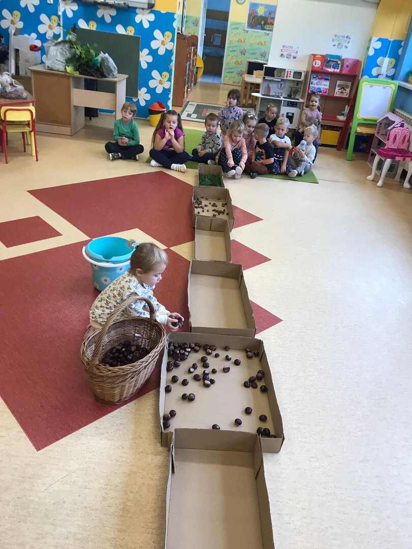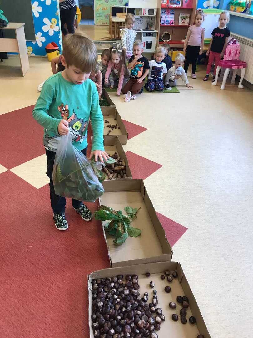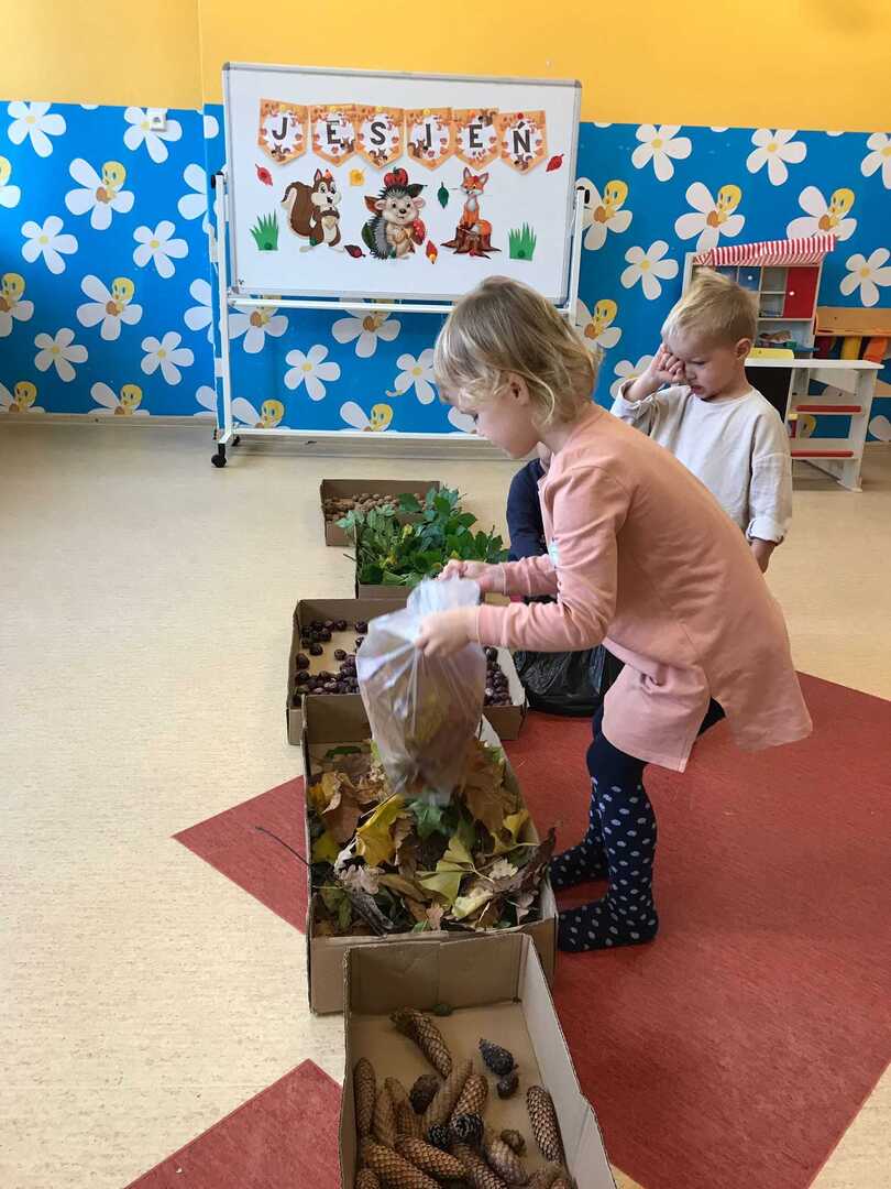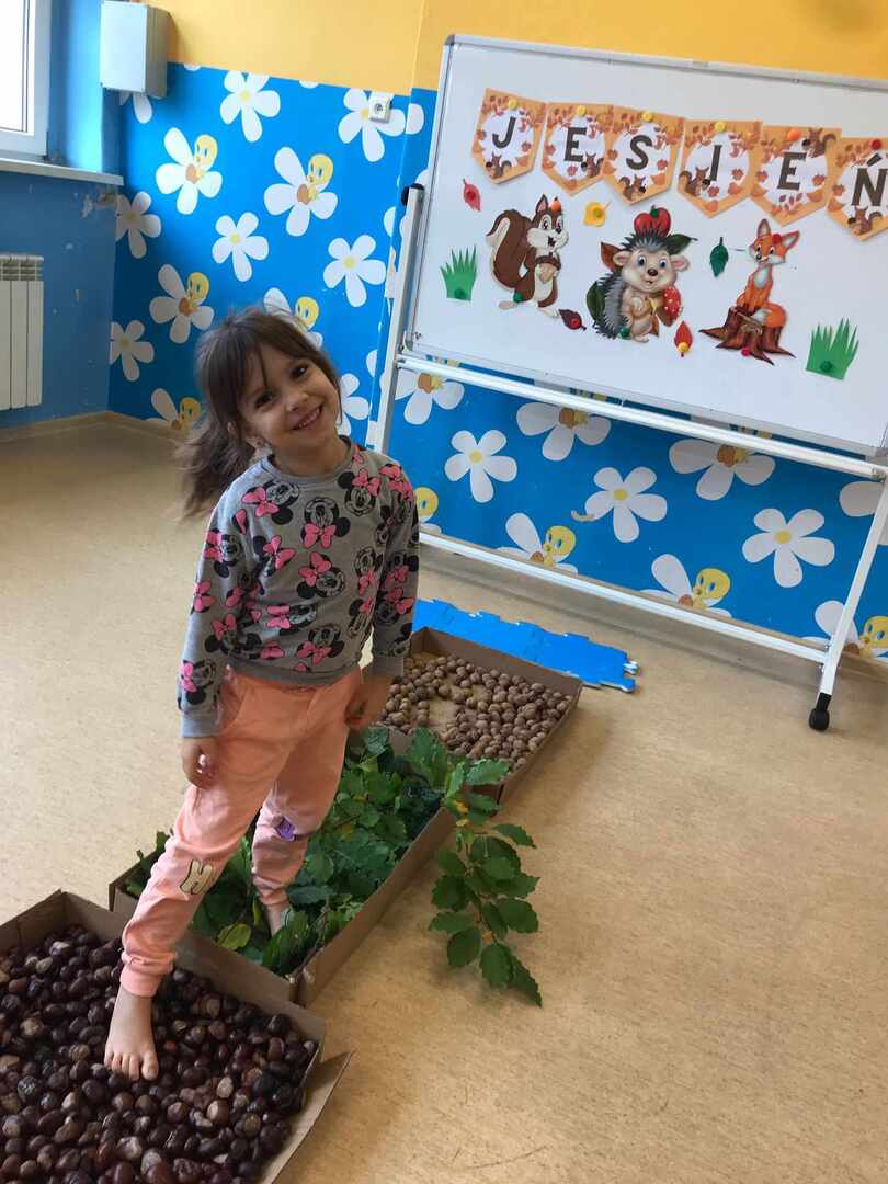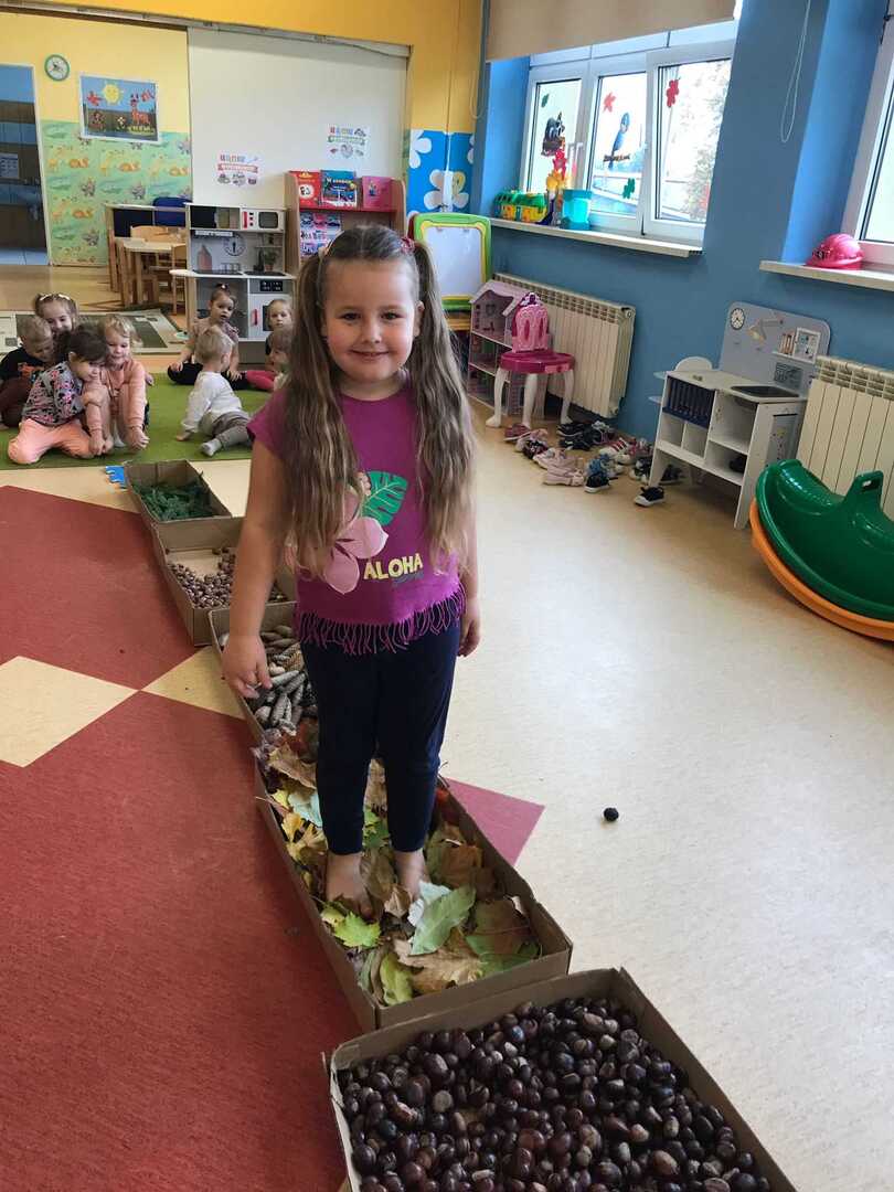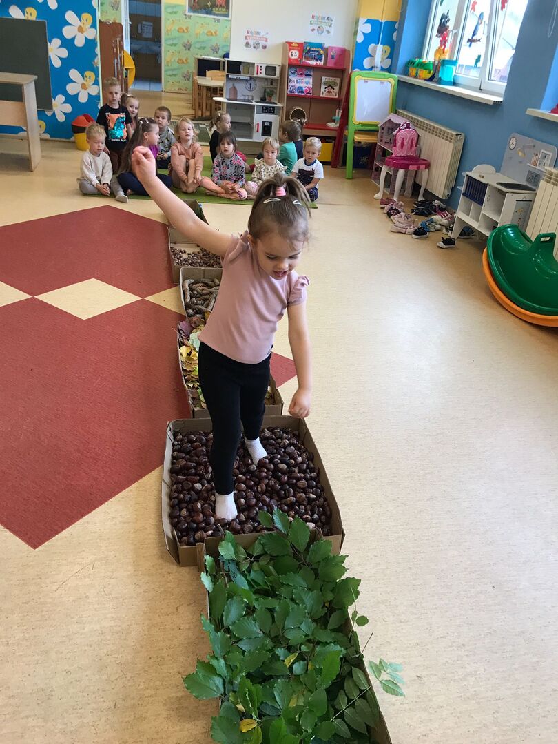 Za oknami piękna Polska złota jesień, która jest okazją do wielu rozmów, zabaw, ciekawych prac, jak również podejmowania nowych doświadczeń. Jednym z nich była jesienna ścieżka sensoryczna, którą dzieci wspólnie przygotowały z zebranych darów z parku i lasu.