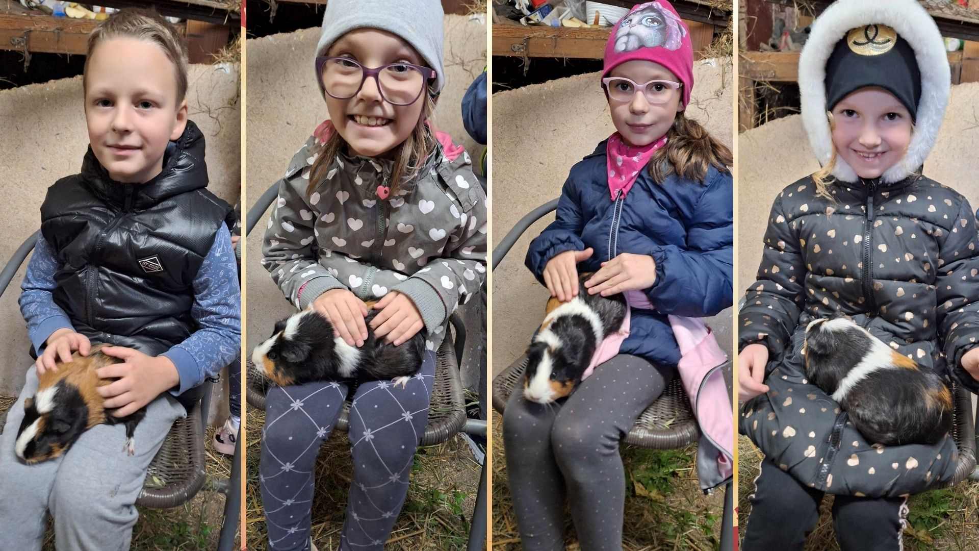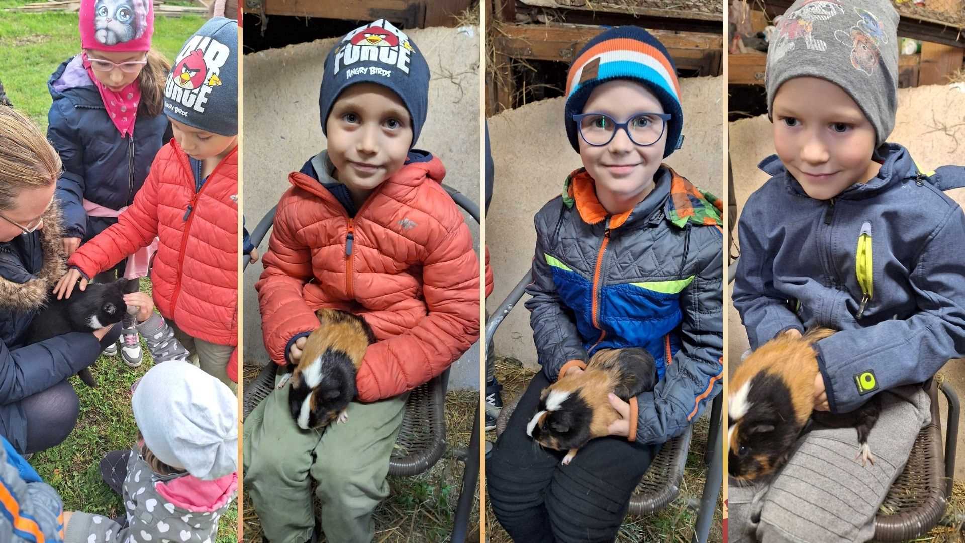 Podczas zajęć świetlicowych uczniowie klasy I i II mieli ogromną przyjemność zawitać do Państwa Przybylskich, gdzie dzięki gościnności Gospodarzy obcowali z ich fantastycznymi zwierzakami, poznali zasady hodowli, a nawet otrzymali jesienne upominki. Czas spędzony w tak bliskim towarzystwie przyjaznych zwierzątek sprawił wszystkim ogromną frajdę i stanowił temat do rozmów jeszcze przez wiele dni.