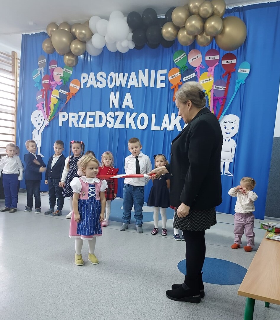 20.11.2023r. w naszym przedszkolu odbyła się uroczyste Pasowania na Przedszkolaka. Uroczystość rozpoczęła się od krótkiego przemówienia Pani Dyrektor. Następnie mali artyści pod okiem wychowawczyń prezentowali swoje umiejętności, dając dowód jak wiele już potrafią. Przedszkolaki śpiewały piosenki oraz recytowały wiersze. Po części artystycznej nastąpił akt ślubowania – pani dyrektor odczytała słowa przysięgi, a każdy przedszkolak obiecywał: słuchać pani, zgodnie się bawić i nie płakać! W końcu przyszedł czas na Uroczyste Pasowanie, pani dyrektor przyniosła ze sobą ogromny magiczny ołówek i lekko dotykając ramienia dzieci nadawała im miano PRAWDZIWYCH PRZEDSZKOLAKÓW. Na pamiątkę tego wydarzenia dzieci otrzymały pamiątkowy dyplom oraz upominek. Zakończeniem tego wyjątkowego dnia był słodki poczęstunek przygotowany przez rodziców. Naszym kochanym przedszkolakom życzymy uśmiechu, wspaniałej zabawy i cudownych chwil w naszym przedszkolu.