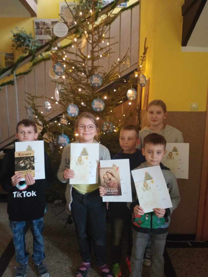 Uczniowie naszej szkoły oraz przedszkolacy uczęszczający do oddziału przedszkolnego, jak co roku, wykazali się niezwykłą pomysłowością, kreatywnością i zaangażowaniem, przygotowując piękne stroiki bożonarodzeniowe, które zostały zaprezentowane podczas Kiermaszu Świątecznego, który odbył się w naszej szkole. Każdy uczestnik konkursu otrzymał dyplom oraz upominek – książeczkę z kolędami.