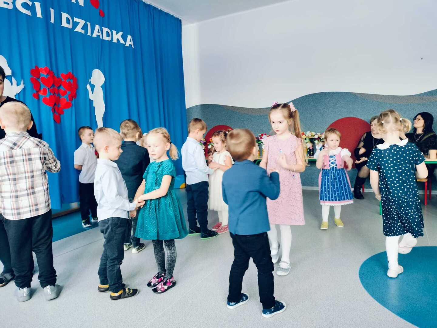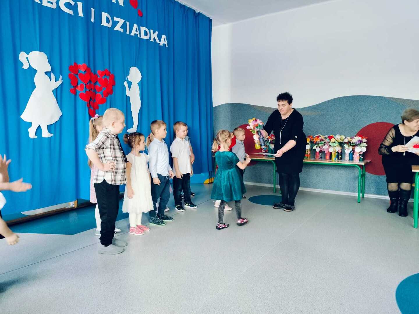 Przedszkolaki już od samego rana z niecierpliwością wyczekiwały zaproszonych gości. Licznie przybyli Dziadkowie mieli okazję podziwiać swoje wnuczęta w specjalnie dla nich przygotowanym programie artystycznym. Dzieciaki pod czujnym okiem swojej pani zaprezentowały wiersze, piosenki i taniec. W wyjątkowej atmosferze wnuczęta wspaniale wystąpiły przed bliskimi. Następnie zaprosiły babcie i dziadków na słodki poczęstunek przygotowany przez rodziców oraz obdarowały swoich gości laurkami i prezentami.
