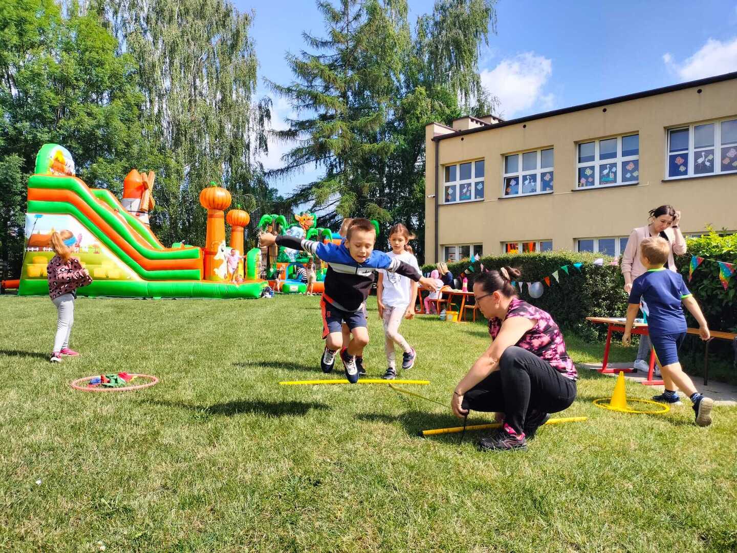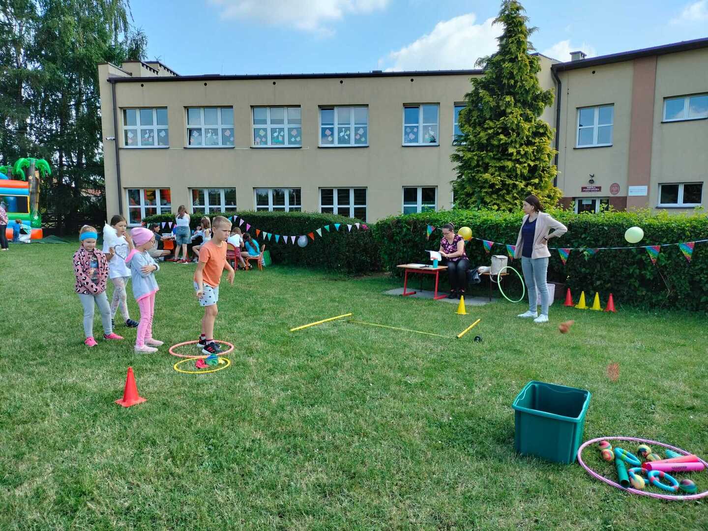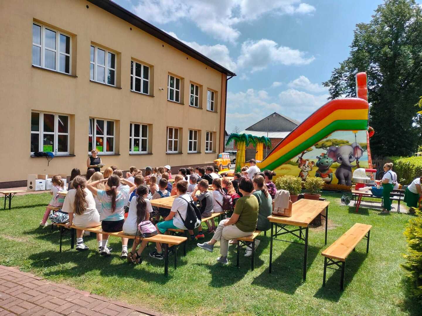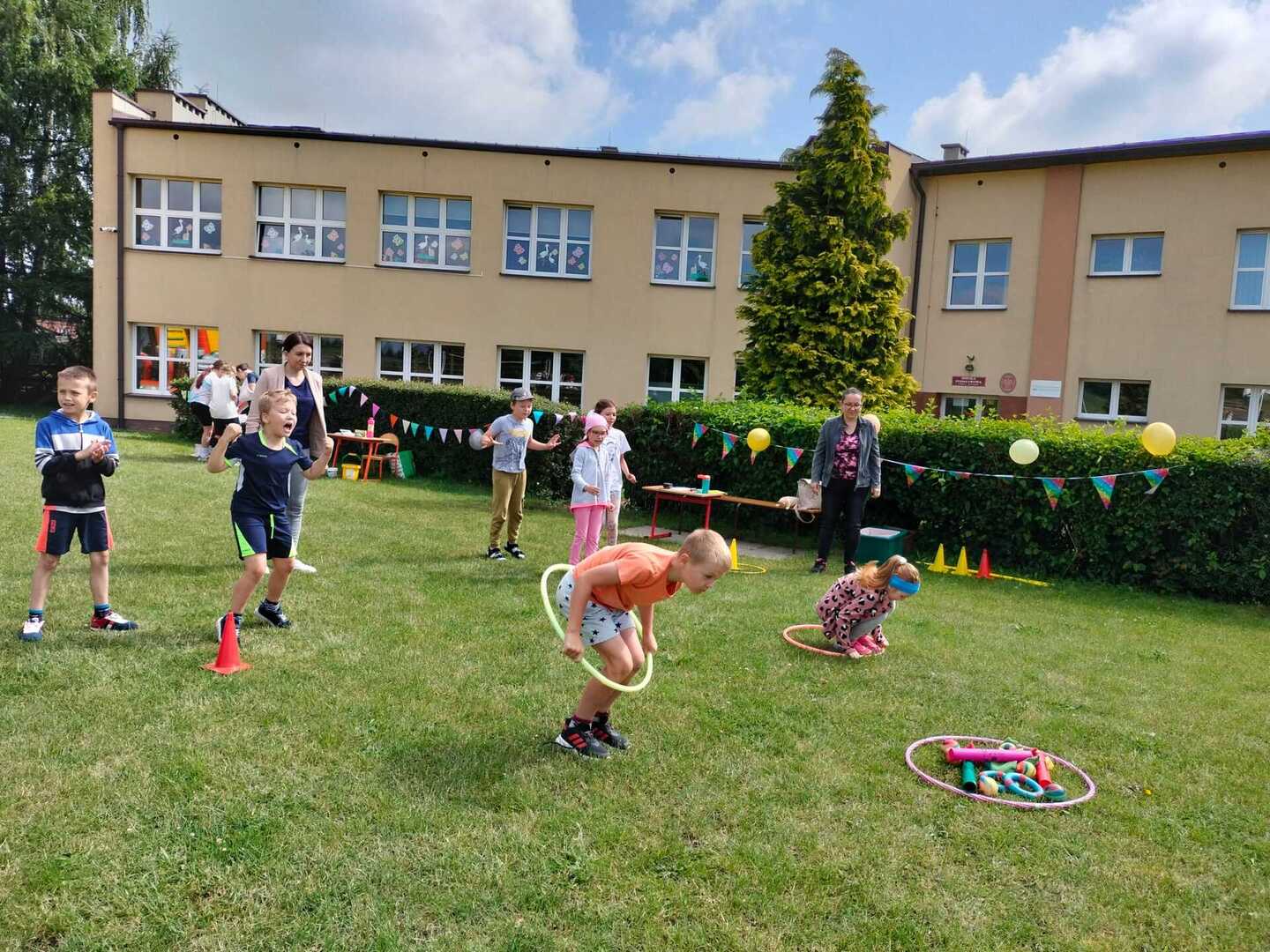 Dzień Dziecka to wyjątkowa okazja do wspólnej zabawy wszystkich dzieci, młodszych i starszych. Piękna, słoneczna pogoda sprzyjała ich doskonałym humorom i wyjątkowej atmosferze na świeżym powietrzu. Uczniowie spędzili przyjemnie czas i pełni pozytywnych wrażeń udali się do domu.