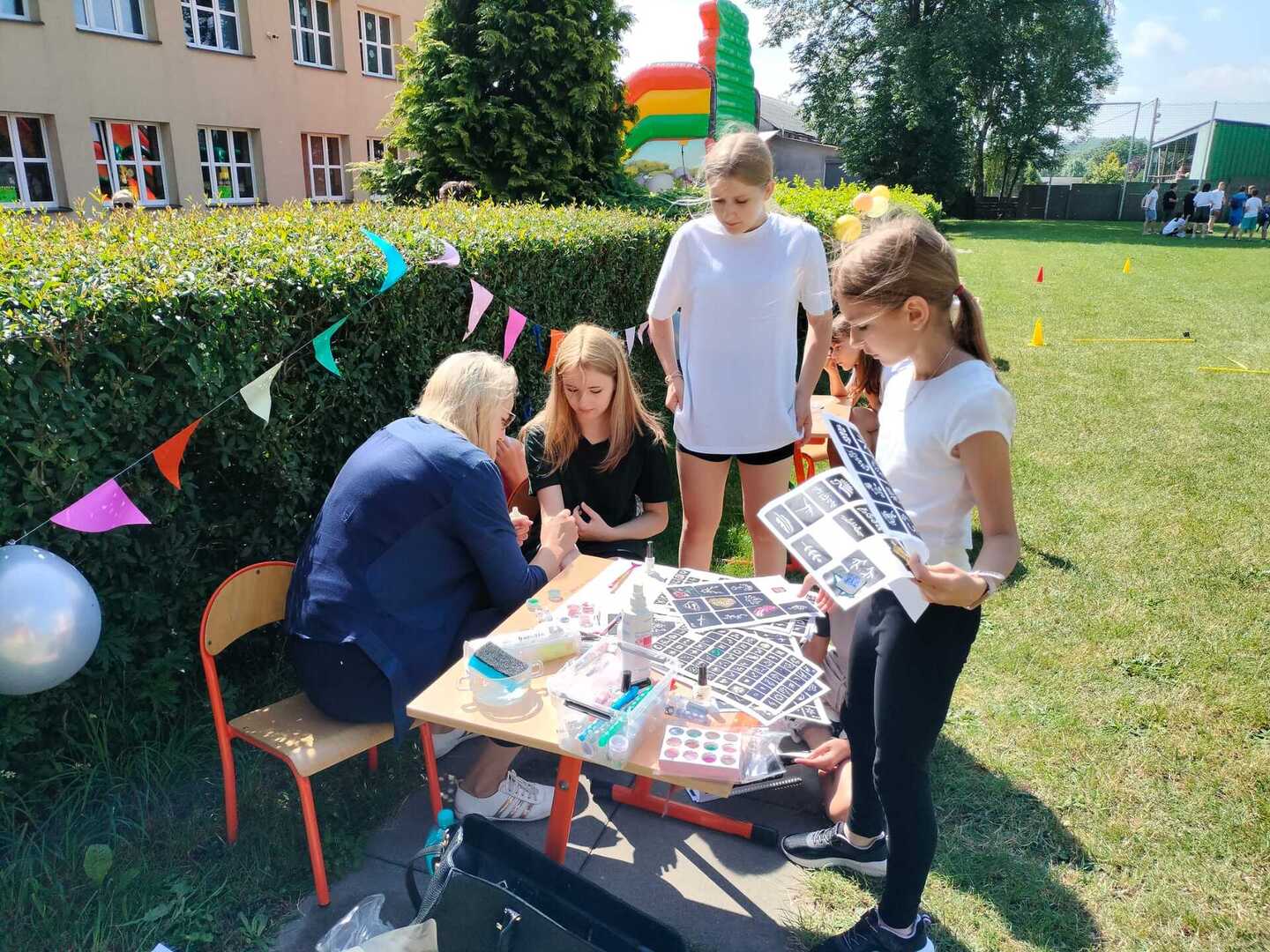 5 czerwca 2024 w Szkole Podstawowej w Woźnikach - Ligota Woźnicka, jak co roku, świętowaliśmy Międzynarodowy Dzień Dziecka. Tego dnia uczniowie kl. I-VII drużynowo brali udział w licznych konkurencjach sportowych m. in. skok w dal, skakanie na skakance, biegi, rzut piłką w dal, rzuty woreczkiem do celu i inne. Szczególną atrakcją okazały się zabawy na trzech gigantycznych dmuchańcach. Dużym zainteresowaniem cieszyły się również strefa tatuaży, malowanie na foli, bańki oraz malowanie twarzy.