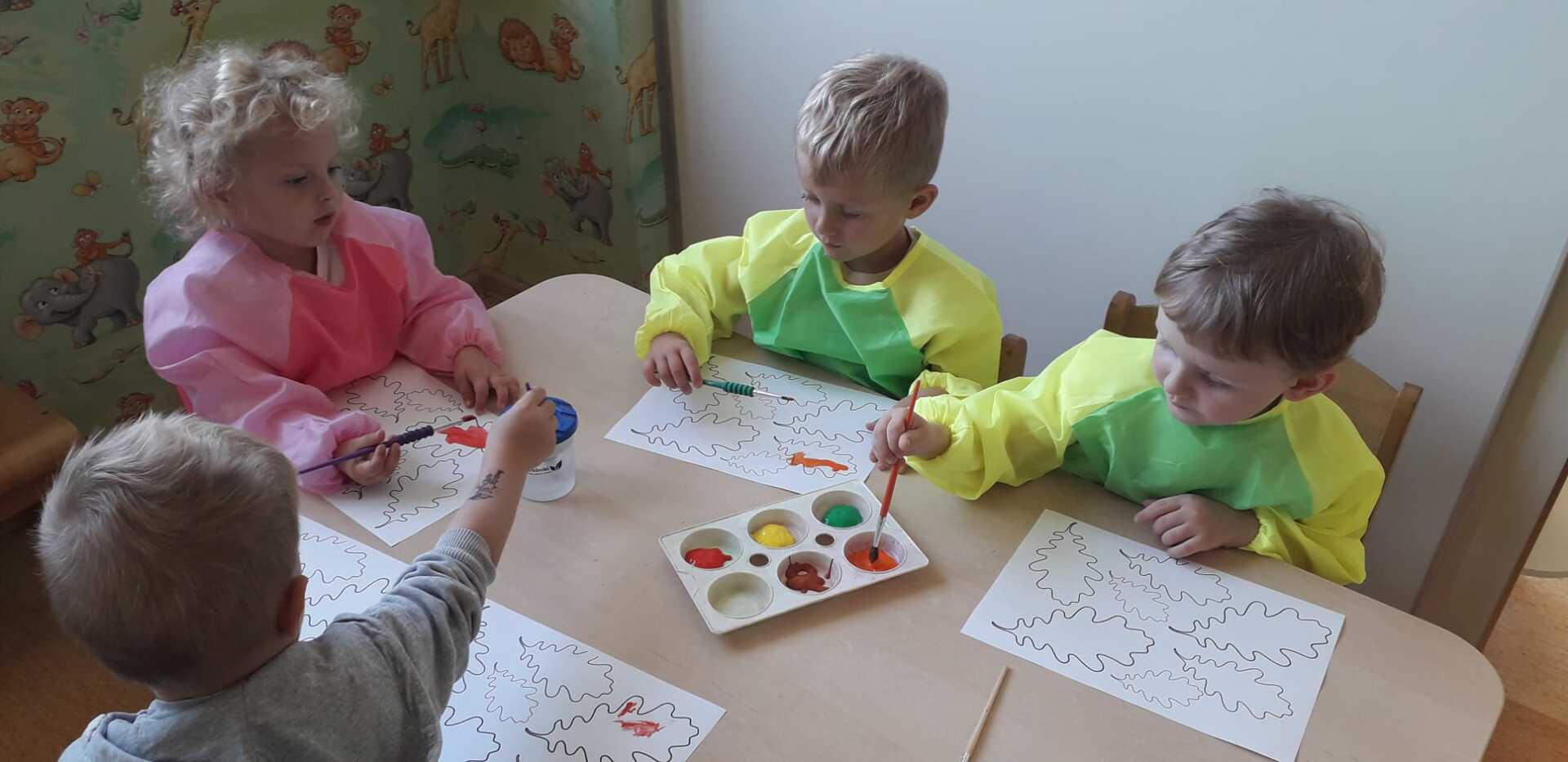 23 września dzieci z naszego przedszkola uroczyście powitały "Pierwszy Dzień Jesieni". Tego dnia królowały kolory: czerwony, żółty, brązowy i pomarańczowy. Dzieci miały okazję dzielić się swoimi spostrzeżeniami na temat zmieniającego się otoczenia – kolorów liści, krótszych dni oraz nadchodzących przygód związanych z tą magiczną porą. Przedszkolaki poznały dary jesieni, przeliczały zbiory oraz tańczyły jesienne tańce. Nie zabrakło również kolorowych prac plastycznych.