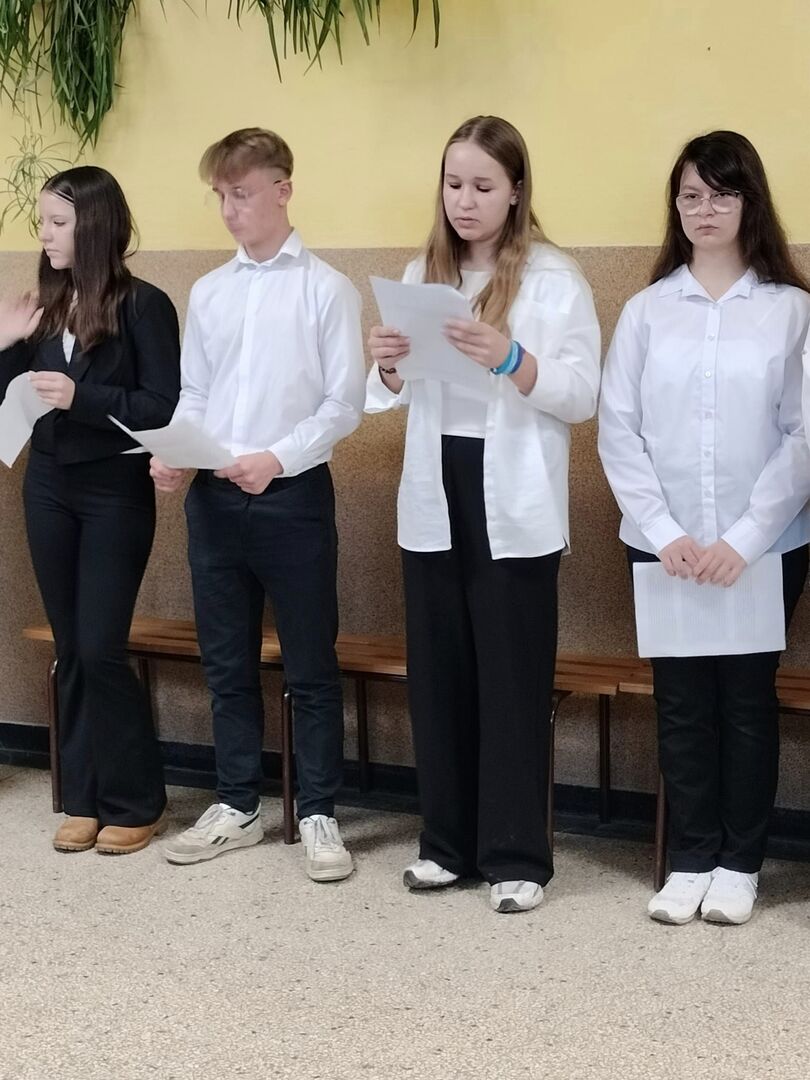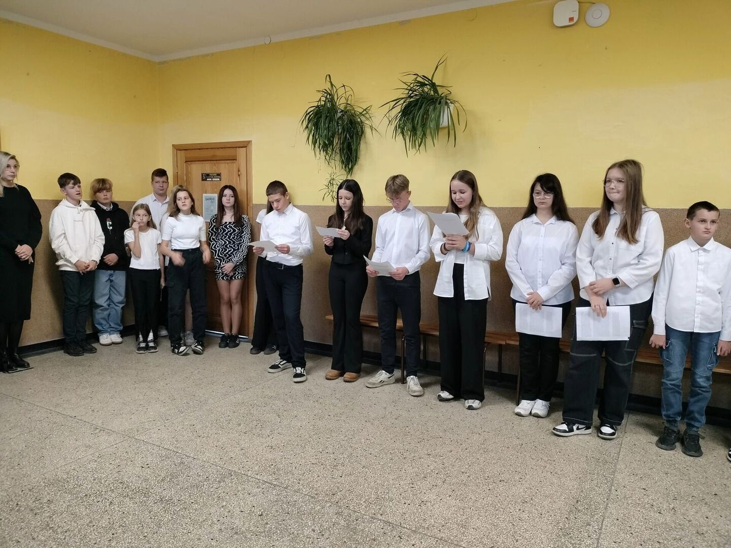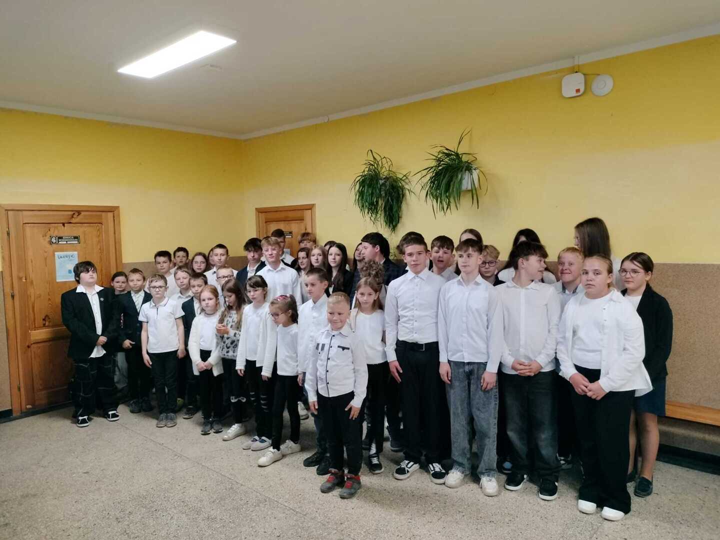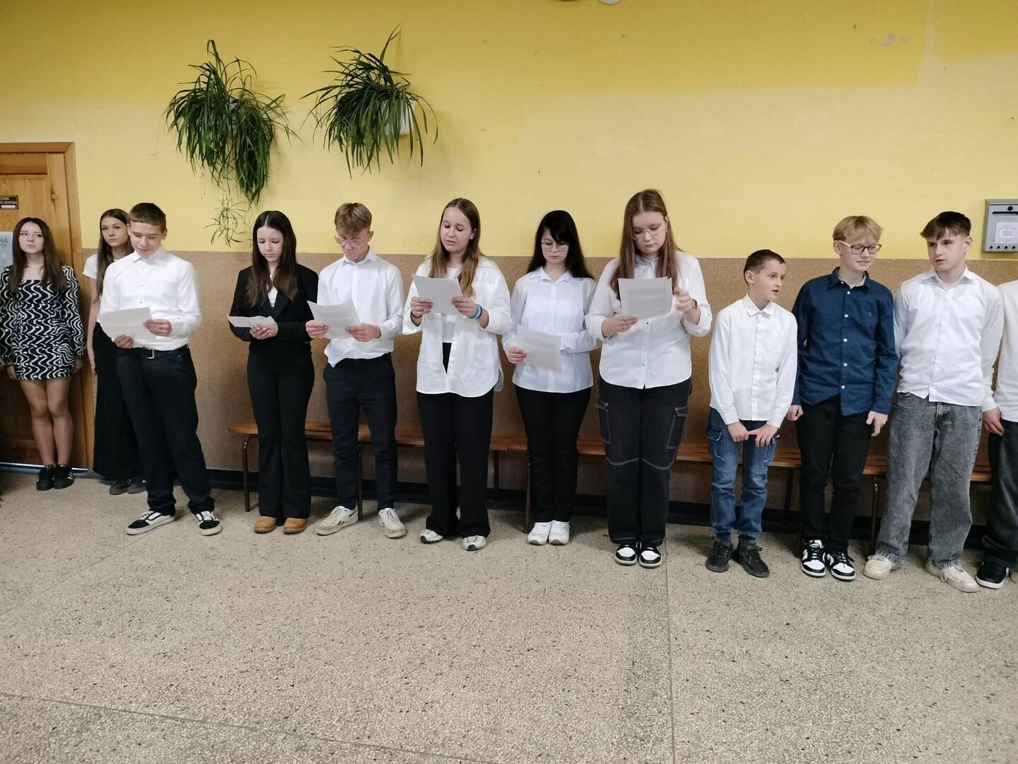 Uczniowie naszej szkoły wzięli udział w akcji Ministerstwa Edukacji Narodowej „Szkoła do hymnu”. W piątek 8 listopada wszyscy razem zaśpiewaliśmy hymn narodowy, a uczniowie klasy ósmej przybliżyli nam historię ustanowienia tego święta oraz przypomnieli historię drogi do niepodległości Polski.