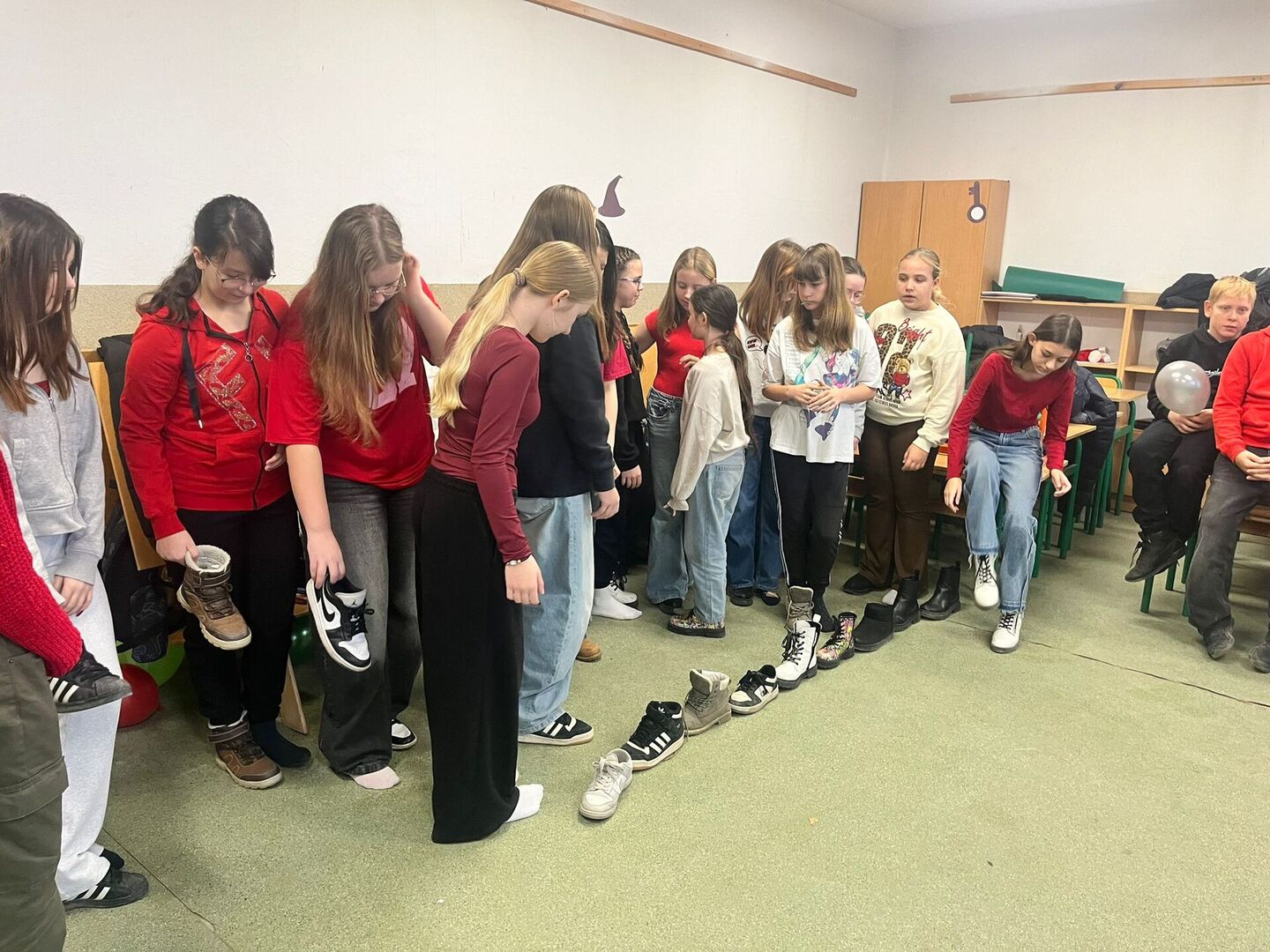 W tym roku, ze względu na trwające prace remontowe na terenie naszej szkoły, nie mogliśmy pozwolić sobie na tradycyjną dyskotekę andrzejkową. Jednakże, za sprawą inicjatywy uczniów z Samorządu, odbyły się zabawy z ich udziałem. Było co prawda ciasno, ale atmosfera była bardzo pozytywna.
