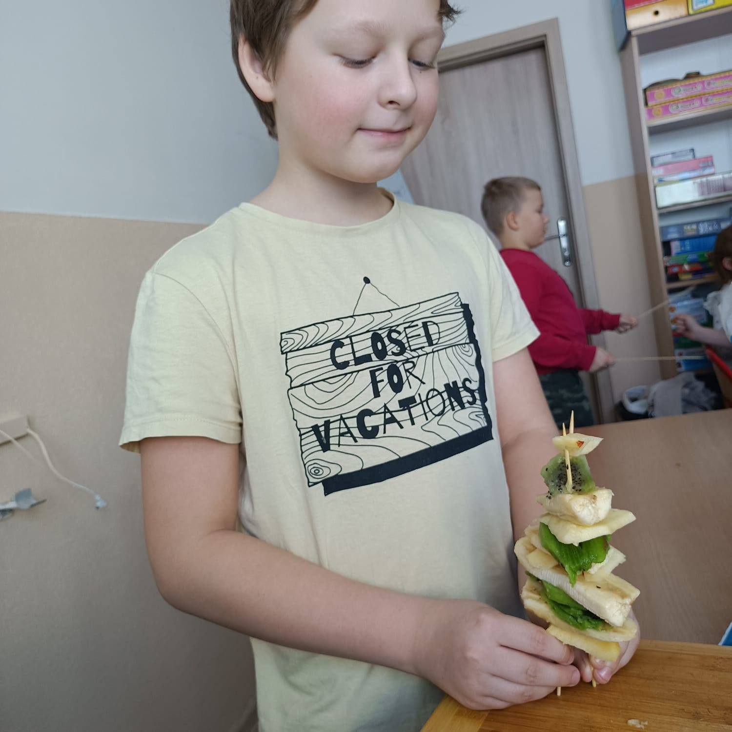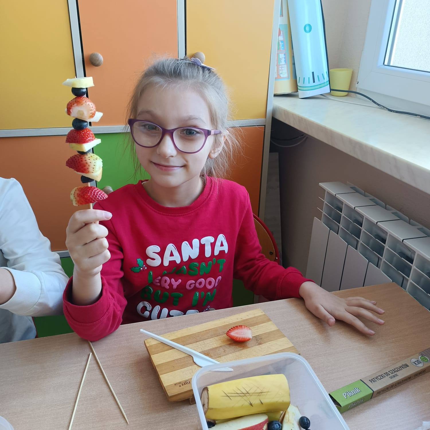 W ramach programu uczniowie kl. 2 i 3 realizowali projekt pt. "Piramida zdrowego żywienia". Tworzyli prace plastyczne, a także samodzielnie wykonywali szaszłyki owocowe. Wszystkie etapy tworzenia szaszłyków od przygotowania produktów po mycie owoców, krojenie układanie przebiegały bardzo sprawnie. Na koniec dzieci apetycznie spożywały swoje zdrowe smakołyki. Uczniowie klas starszych zaangażowani byli w program m.in poprzez promowanie aktywności fizycznej, tym razem w formie tańca nowoczesnego. Uczniowie klas 7 i 8 przygotowali choreografię tańca mikołajkowego. Taniec miała okazję zobaczyć cała społeczność szkolna podczas spotkania z Mikołajem oraz społeczność lokalna podczas spotkania opłatkowego dla seniorów w OSP Ligocie Woźnickiej.