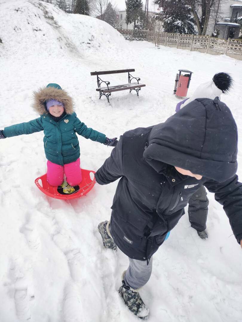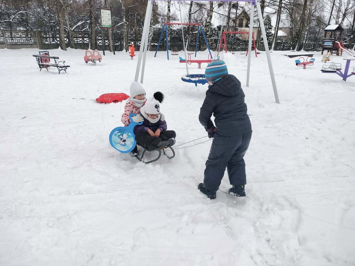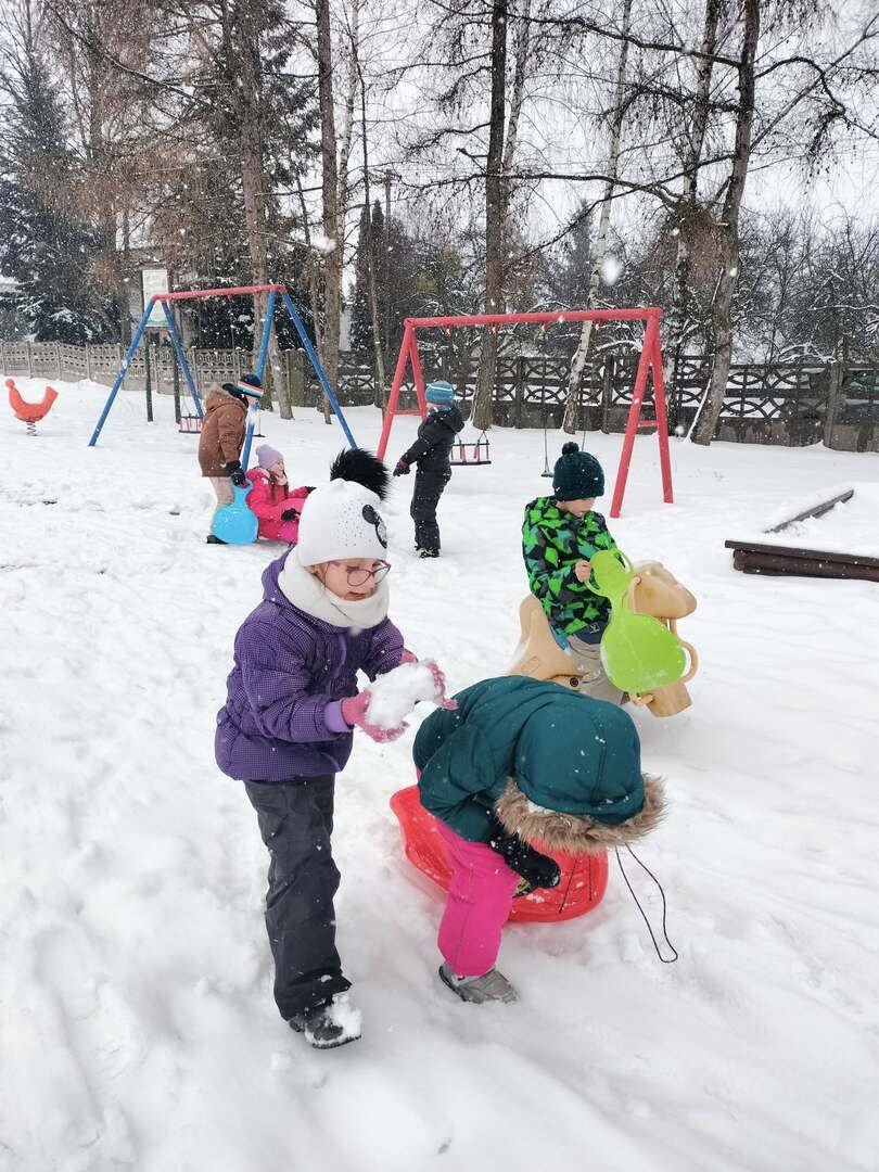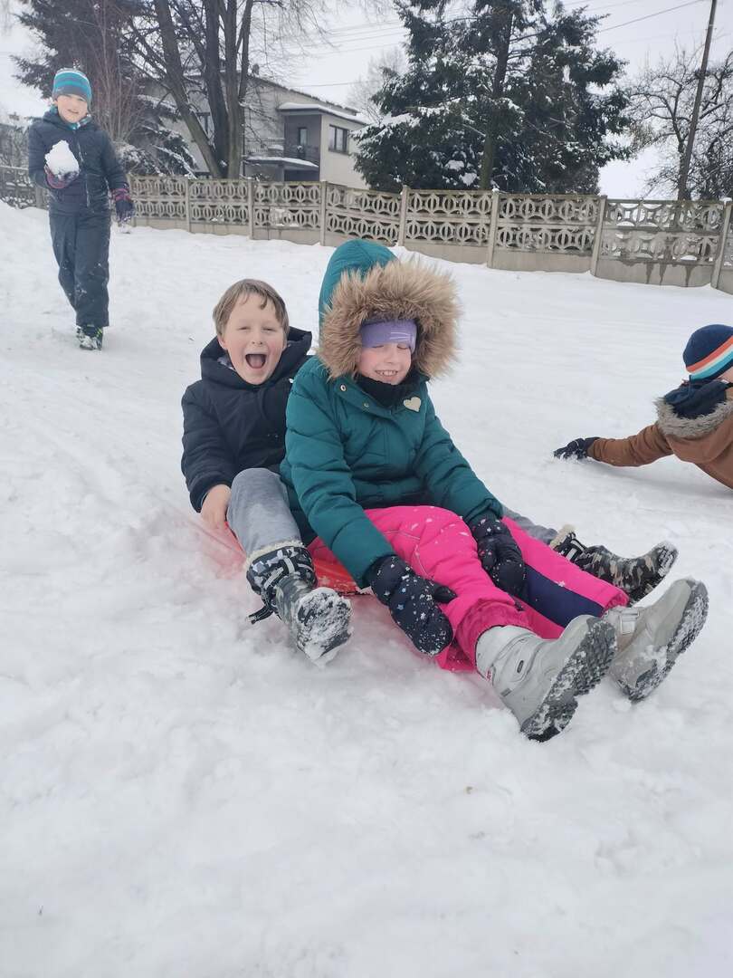 Zawitała do nas prawdziwa zima ze śniegiem i mrozem. Na taką pogodę dzieci czekały bardzo długo! Uczniowie klas II i III udali się na boisko szkolne, aby oddać się szaleństwu na białym puchu i stoczyć bitwę na śnieżki. Powstały też wspaniale bałwany i aniołki. Największą atrakcją była jazda na sankach. Zabawa była bardzo udana. Stała się doskonałą okazją, aby zażyć ruchu na świeżym powietrzu i spędzić wspólnie czas.