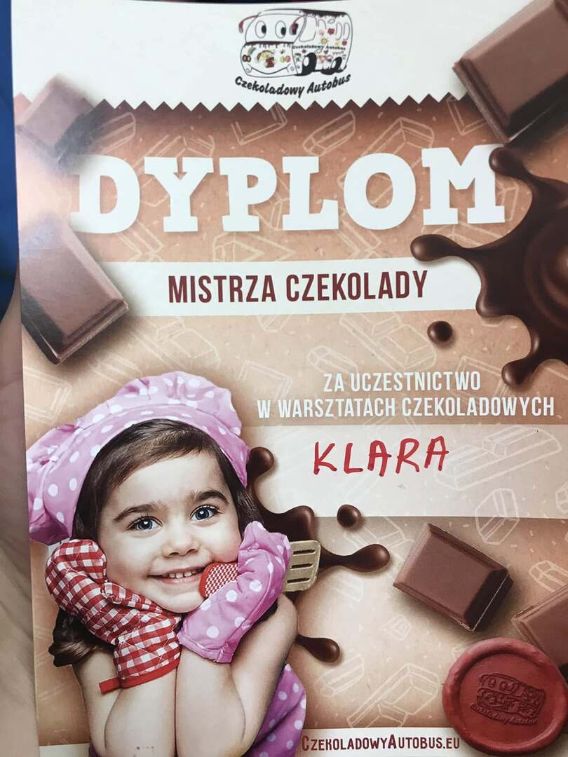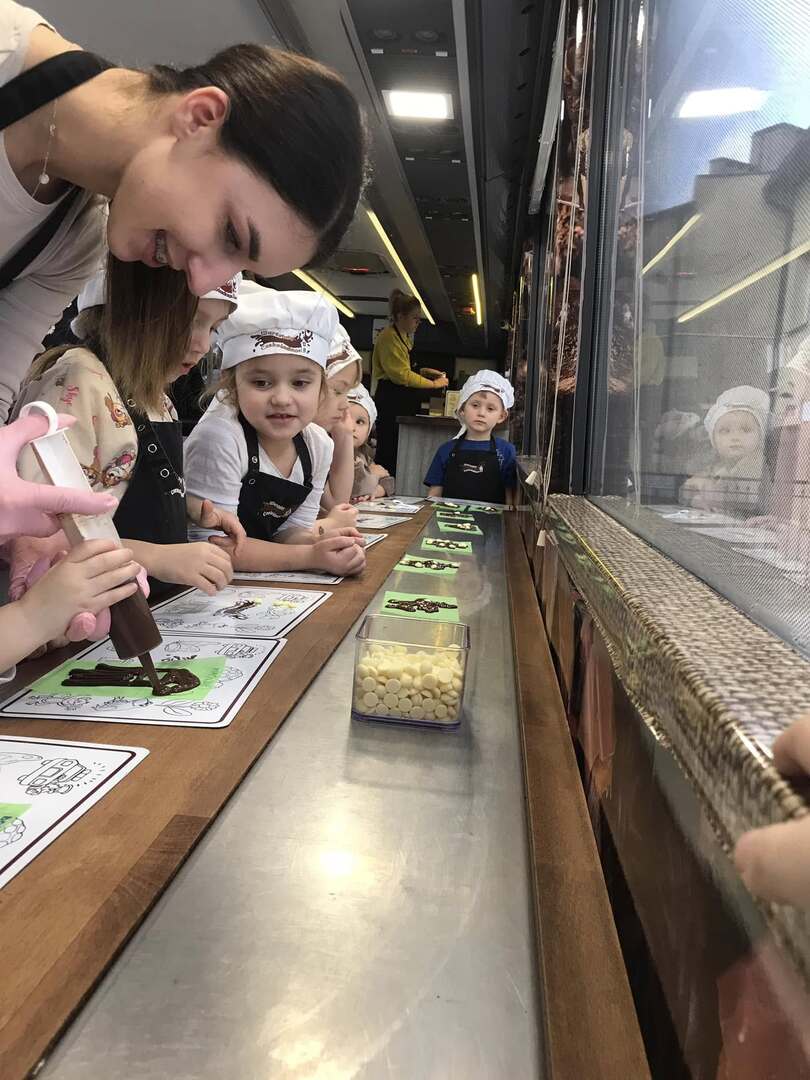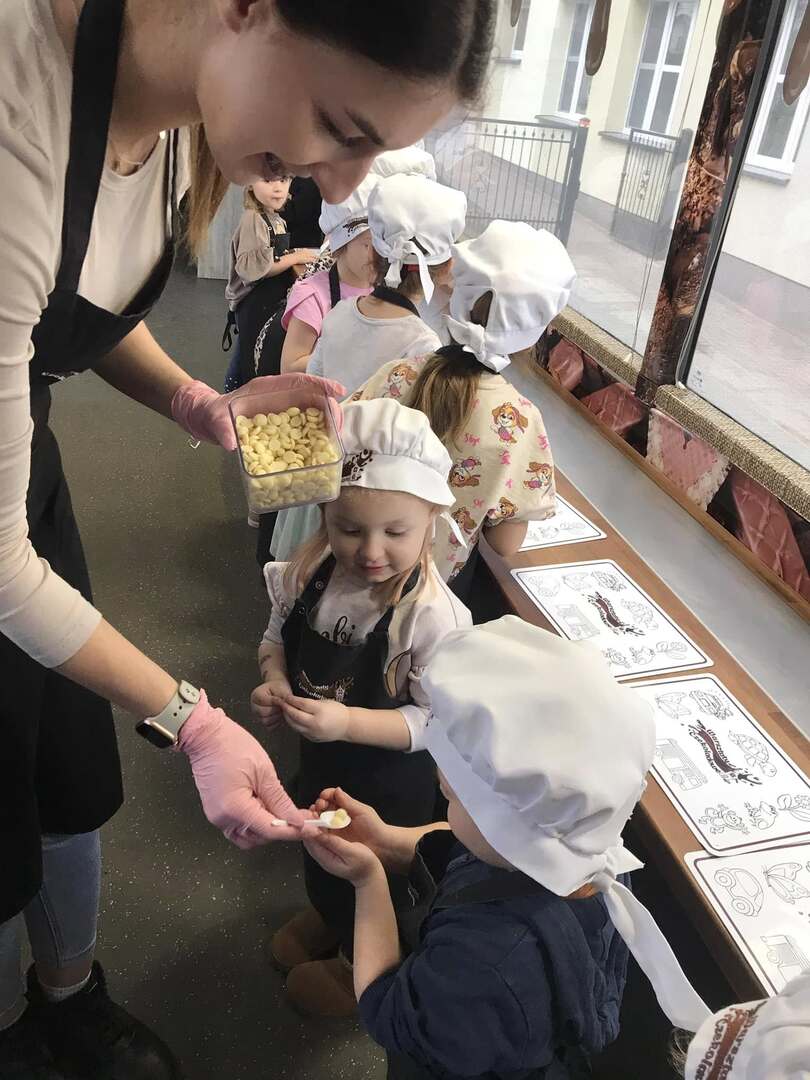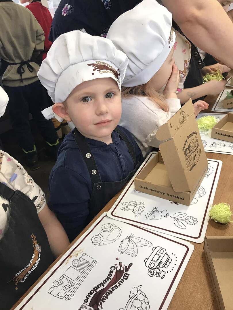 Dzieci zostały zapoznane z historią czekolady. Kolejnym punktem programu była degustacja trzech rodzajów czekolady. Do zajęć wykorzystano zdrową czekoladę o zawartości 85% kakao. Każde dziecko przy pomocy foremki wykonało swoją czekoladkę. Rysowało wzory czekoladą i ozdabiało je innymi rodzajami masy czekoladowej. Wszyscy uczestnicy zdobyli słodkie nagrody. Wręczono każdemu dziecku dyplom „Mistrza Czekolady”.
