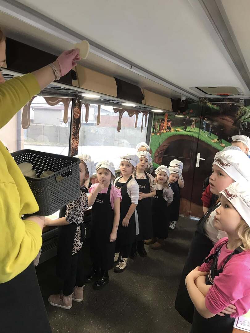 Udział w warsztatach czekoladowych w mobilnym autobusie okazał się niesamowitą i bardzo słodka przygodą dla naszych przedszkolaków