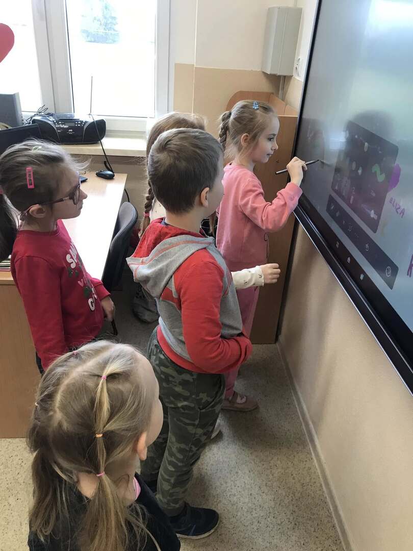 Dzieci uczestniczyły w lekcjach klasy II i klasy III, poza tym zobaczyły także jak wyglądają pozostałe sale lekcyjne oraz sala komputerowa.