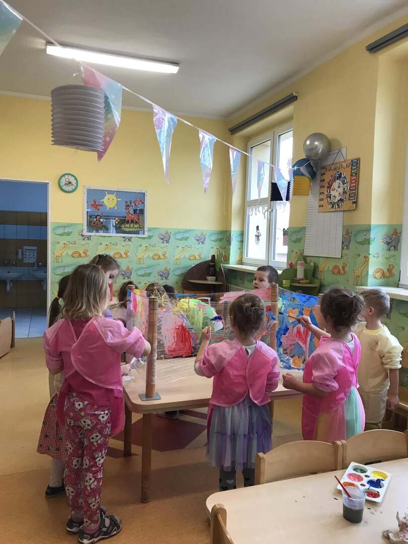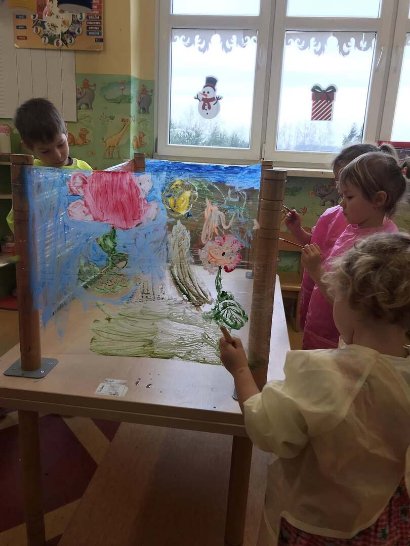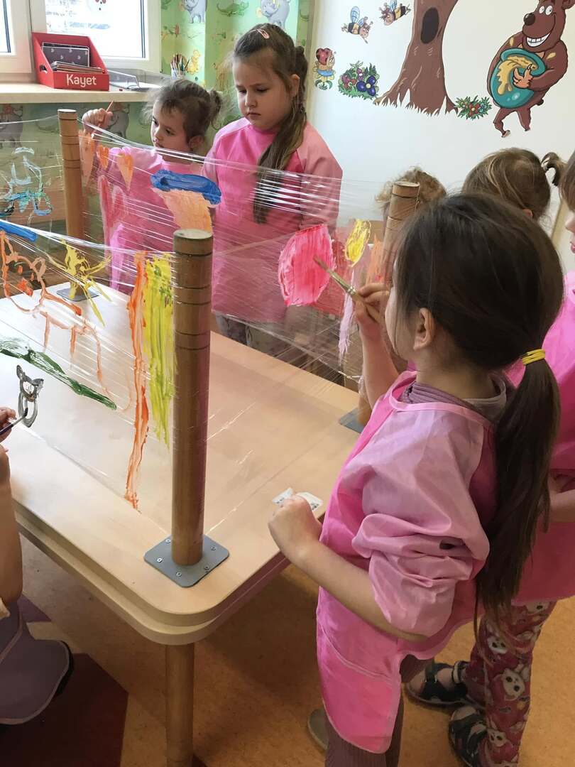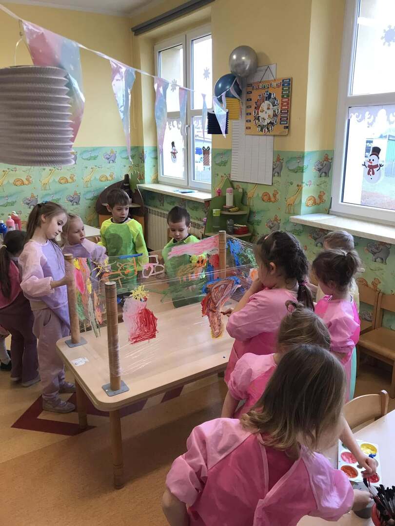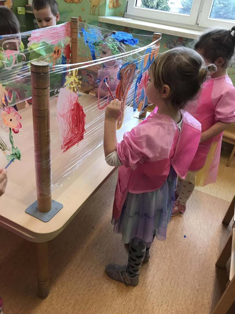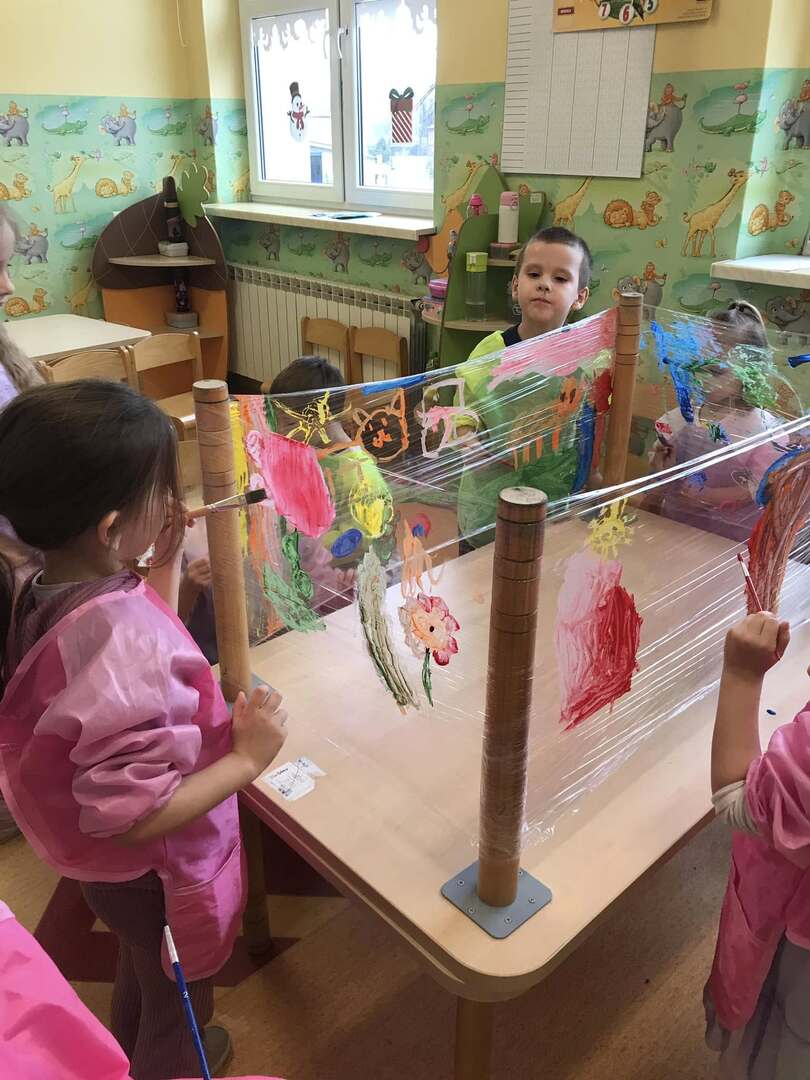 Malowanie na przezroczystej folii stretch daje unikalny efekt wizualny i może być ciekawym doświadczeniem i ćwiczeniem sensorycznym. Tego rodzaju zajęcia plastyczne są doskonałe dla rozwoju motoryki małej, zdolności koordynacyjnych oraz kreatywności.