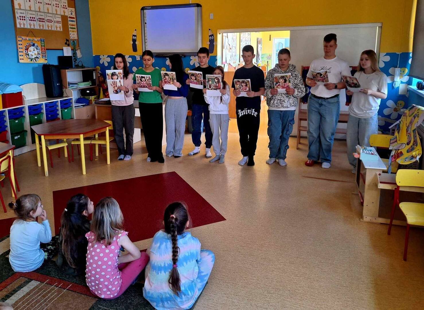 A to jeszcze nie wszystko! Członkowie SKW z VII klasy przygotowali i zaprezentowali naszym przedszkolakom wyjątkową bajkę, która pomogła im zrozumieć, że każdy z nas jest inny – i właśnie to czyni świat piękniejszym!
