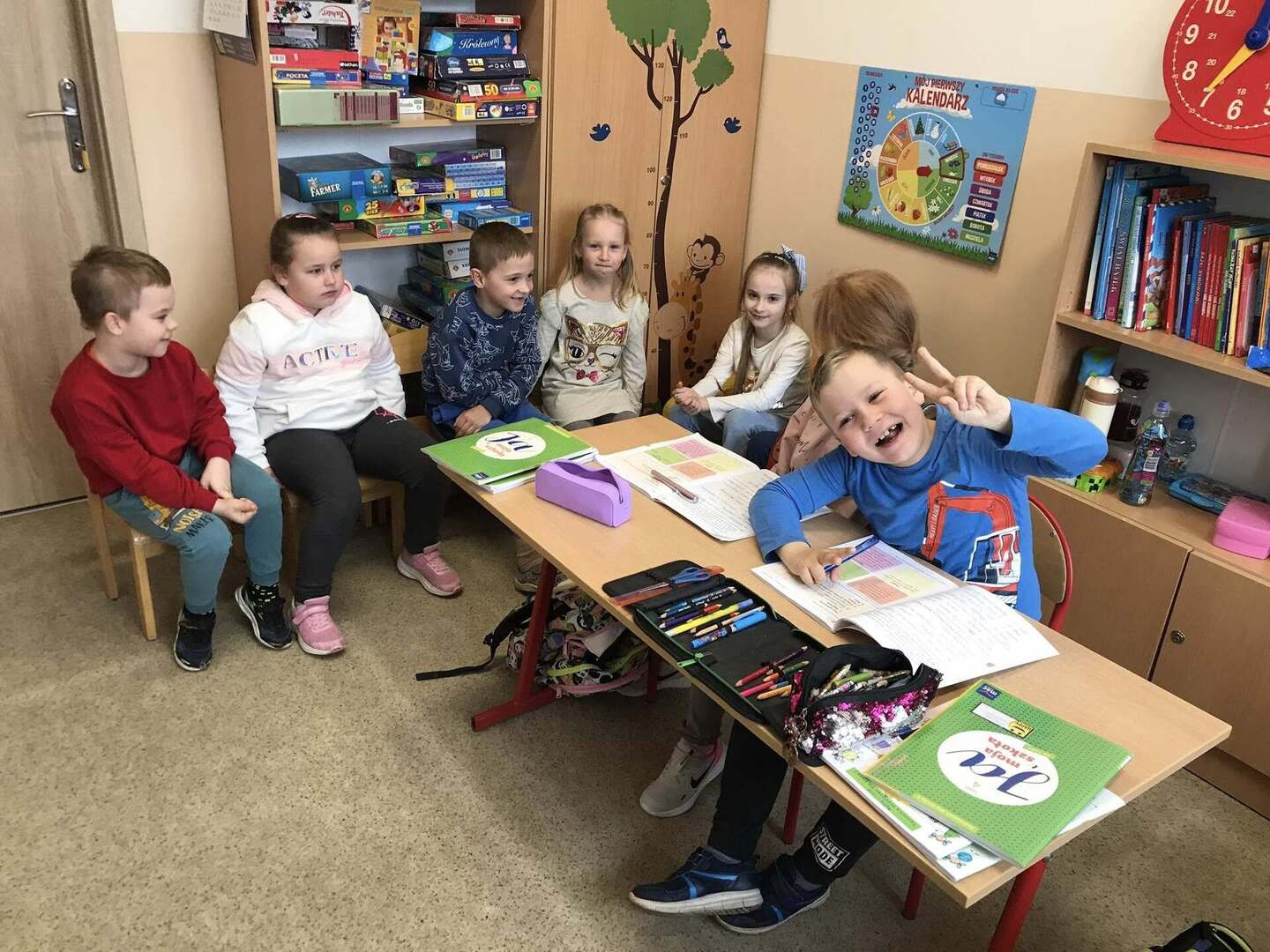 Starszaki miały kolejną okazję poczuć się jak prawdziwi uczniowie podczas wizyty w szkole.Dzieci uczestniczyły w lekcjach klasy II.