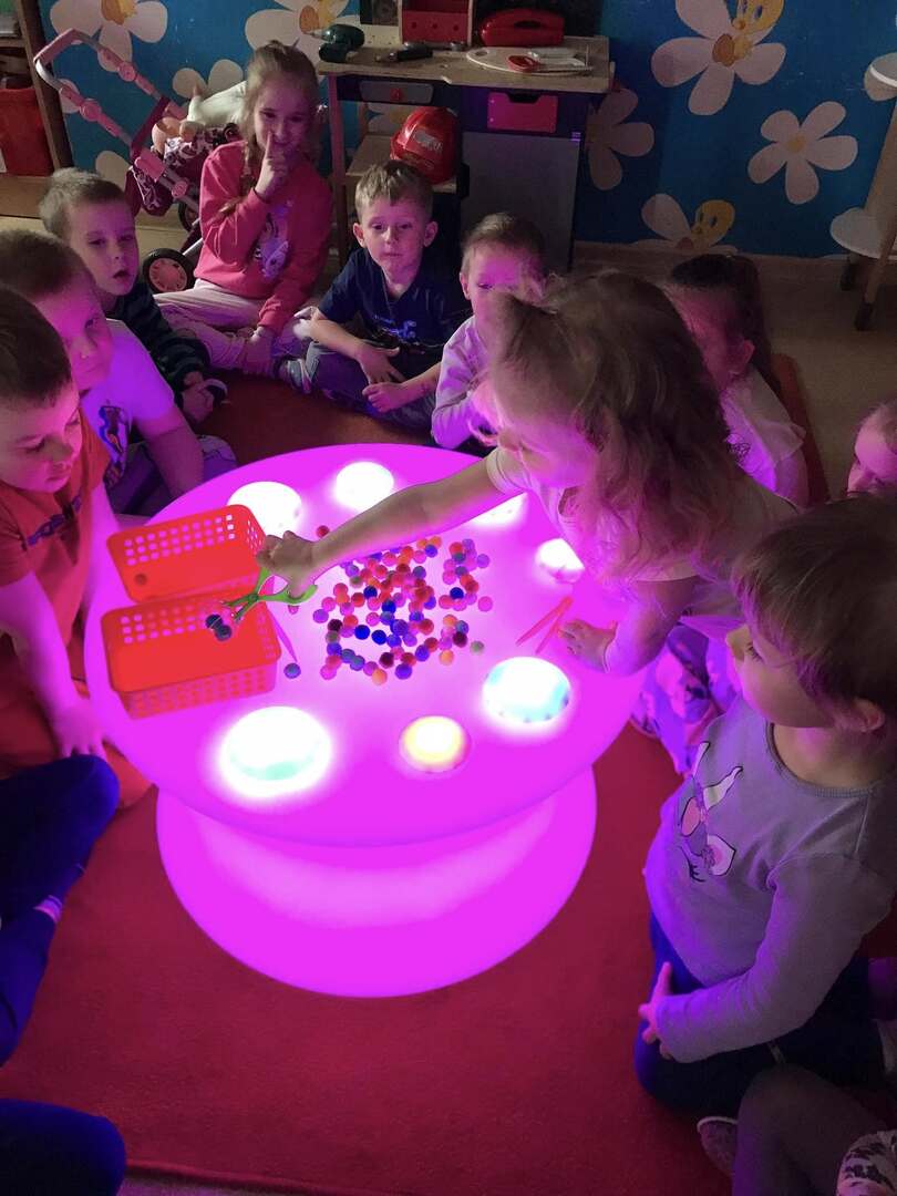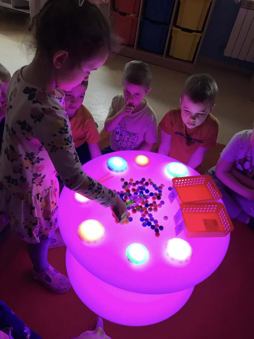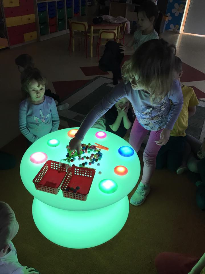 • Kreatywność i zabawa: Podświetlany stolik wprowadził dzieci w świat kolorów, zachęcając do eksploracji i zabawy poprzez naukę.