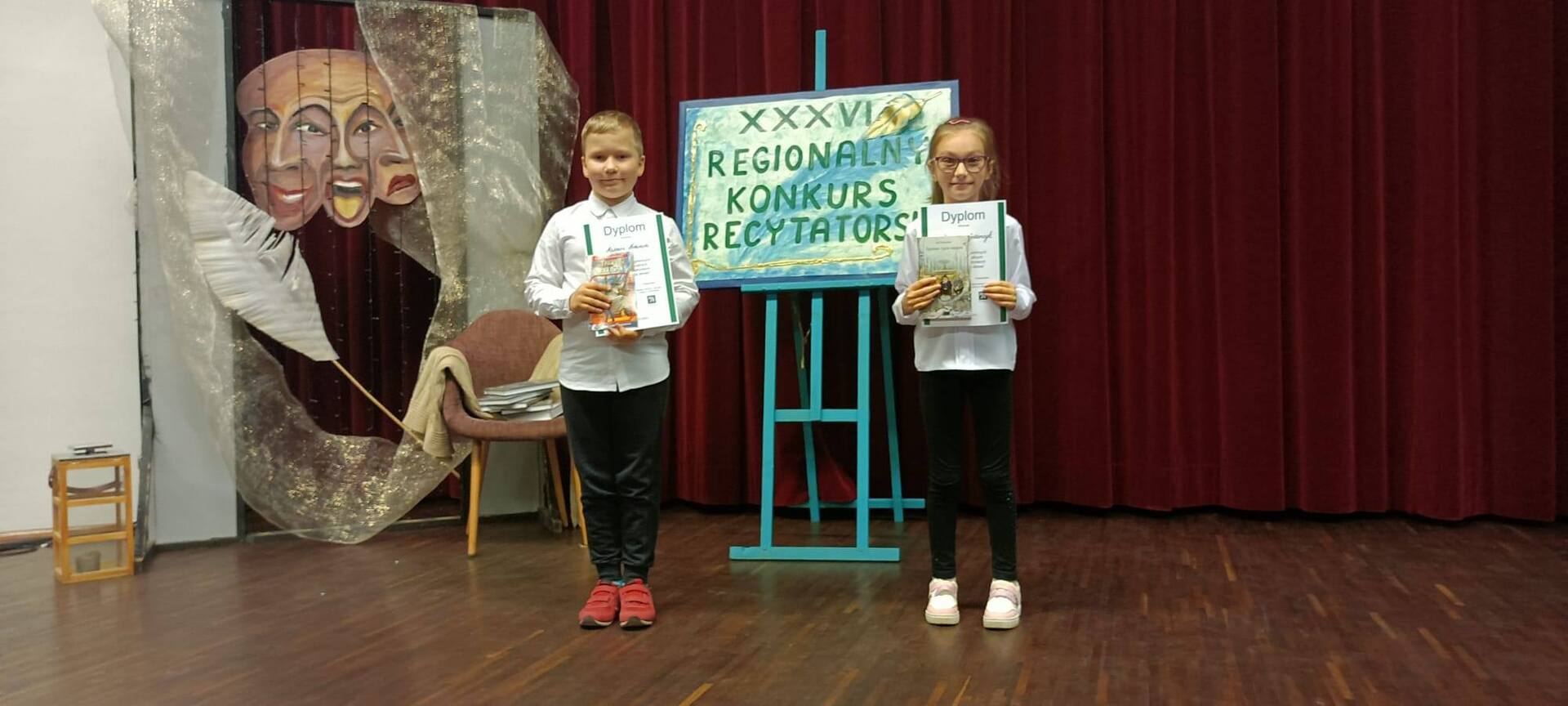 Gratulujemy odwagi za pierwszy występ recytatorski naszych najmłodszych uczniów – Michalinie Solarczyk i Mateuszowi Nokielskiemu.